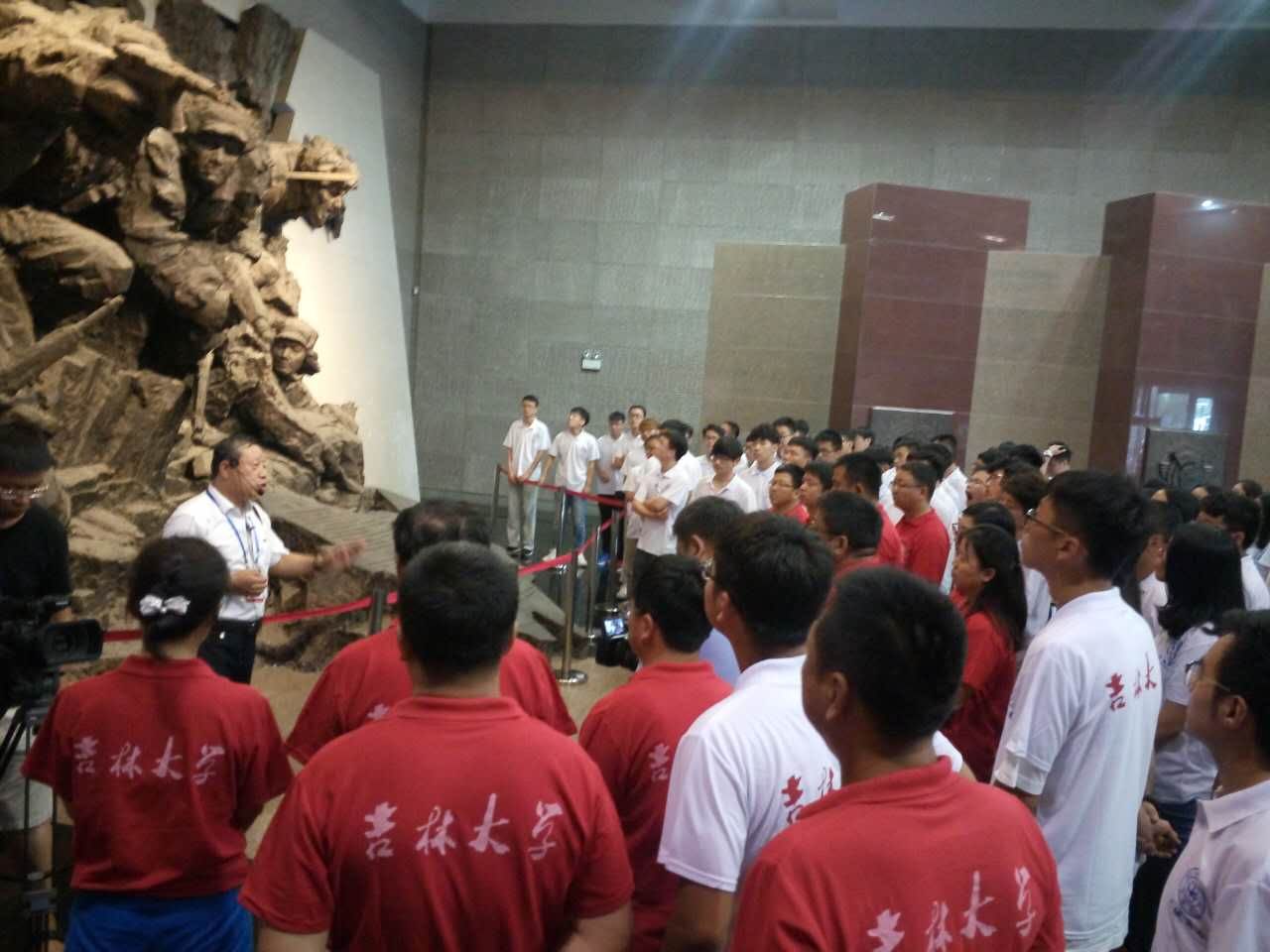 参观正式开始前,在纪念馆前的广场上,全体教工党员、员工党员面向党旗整齐列队,在郭巍教授的领誓下重温入党誓词。随后参观人员有序入场,在讲解员的引领下参观各个展厅,认真倾听介绍。看着一张张珍贵的历史照片,一件件饱经战争洗礼的文物;聆听着激烈、感人、壮烈的战争场景讲述,在场的每一位师生都被震撼着、感动着。大家深刻感受到,今天的美好生活,是无数革命先烈用鲜血和生命换来的。作为新世纪的中国青年,作为生活在和平年代的中国人,我们应该通过什么来表现自己的爱国情怀呢?做好本职工作,完成好学业,学到本领,为社会贡献力量,这就是我们的爱国情怀!