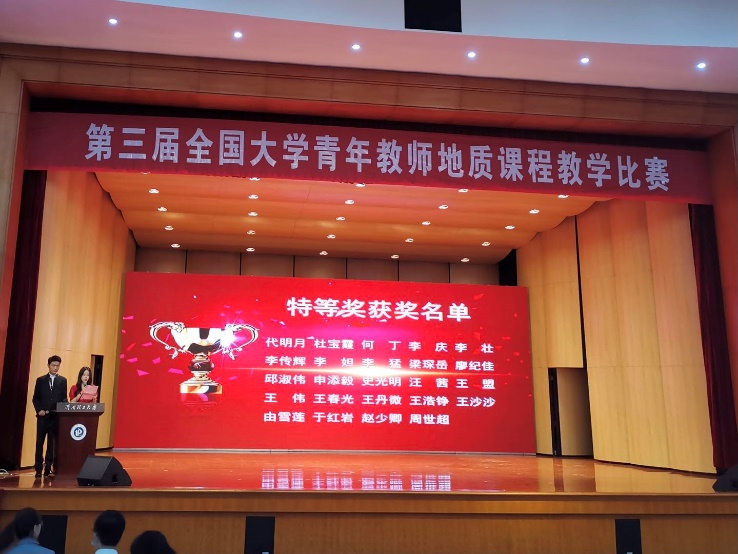 2021年5月15日至16日,由中国地质学会主办,中国地质学会地质教育研究分会、河南理工大学承办的第三届全国大学青年教师地质课程教学比赛在河南理工大学举行。公司参赛教师梁琛岳副教授和王春光副教授表现优异,荣获特等奖。经理单玄龙教授应邀出席大赛闭幕式,为获奖选手颁奖。9428cn太阳集团古天乐荣获“优秀组织奖”。