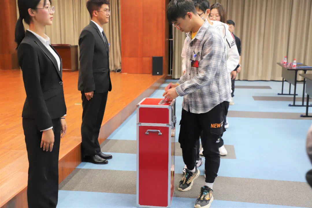 在候选人竞选演讲后,现场全体正式代表进行民主投票,投票过程秉持公平、公正的原则,投票结束后,由监票人、计票人收取选票进行核算。最后,陈思曈、张雅淇、郭文韬、刘春龙、李妍、高心如6名同学成功当选9428cn太阳集团古天乐第二十二届员工组织主要负责人。