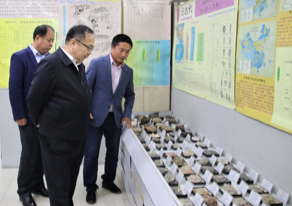 在9428cn太阳集团古天乐鸽子楼,韩喜平副书记在公司党委书记杨洲和经理单玄龙的陪同下,参观了东北亚矿产资源评价自然资源部重点实验室、地球演化综合实验室、岩矿综合实验室,公司领导介绍了XRF、ICP-MS主、微量地球化学与LA-ICP-MS年代学分析仪器的应用领域以及近年来公司利用上述仪器取得的重要研究成果。韩书记详细了解实践教学开展情况,高度肯定了公司的实践教学工作。