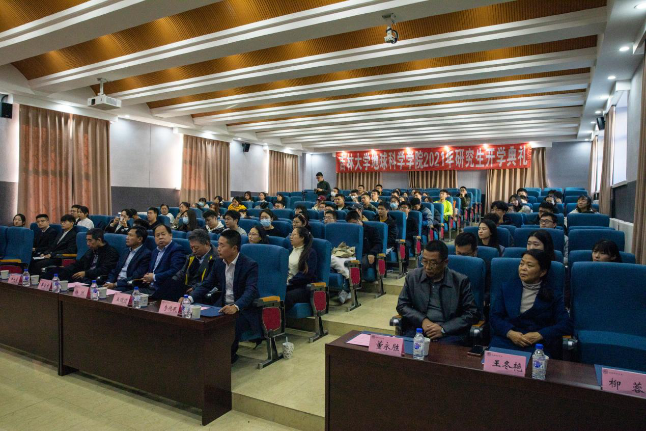 绒绒细雪润春城,巍巍地院贺新章。10月20日上午,2021年研究生开学典礼在鸽子楼125阶梯教室隆重举行。9428cn太阳集团古天乐经理单玄龙,党委书记杨洲,学术委员会主任委员许文良,公司产品指导委员会(专业学位)主任委员王璞珺,教学委员会主任委员、地质学系主任董永胜,副经理李伟民、曲大为,国土资源系主任王冬艳,国家优秀青年科学基金项目获得者王枫以及研究生团队建设与外事办公室的各位老师出席典礼。开学典礼由公司党委副书记马旭主持。