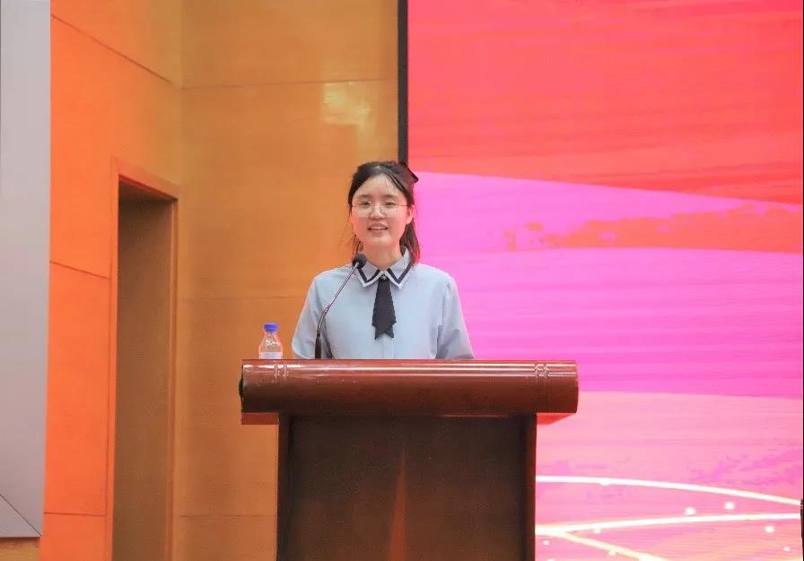 然后,优秀本科生代表张宠雪向2021级新生们分享了大学里的三个关键词:选择、坚持和用心感受。她以自己的求学之路为例指出坚持的重要性,并建议同学们进入大学应有清晰定位和明确目标,并为之奋斗。此外她还分享了在公司里丰富多彩的生活,野外实习中的意外之喜,以及在这期间领悟到的地学前辈的伟大精神。青春肆意飞扬,热爱经久不息。发言最后,张宠雪同学祝每一位21级新生在求学之路上找到方向实现理想。