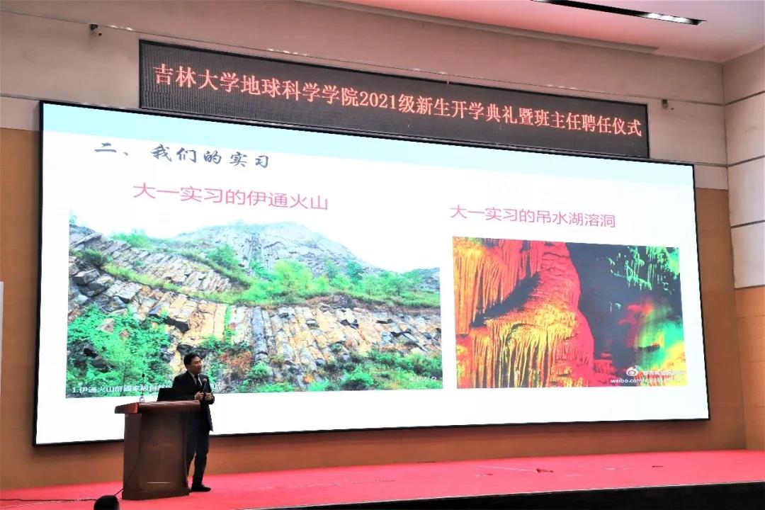 讲座伊始,单经理为同学们简要介绍了朝阳校区——这一座承载同学们大学本科生活后两年的美丽校园,展示了同学们四年内将经历的丰富的地学实习内容,包括大一长春周边实习、大二兴城实习和大三专业实习。火山、溶洞是同学们最好的老师,高原、戈壁是同学们无二的教本,多彩的地员工活使同学们向往,提升了同学们对于地学的学习兴趣。单经理还以自己学习研究时的亲身经历告诉同学们地学学习十分有趣,地学人山峦为经,岩芯作典,漫行于大地之上,探究地球脉动。