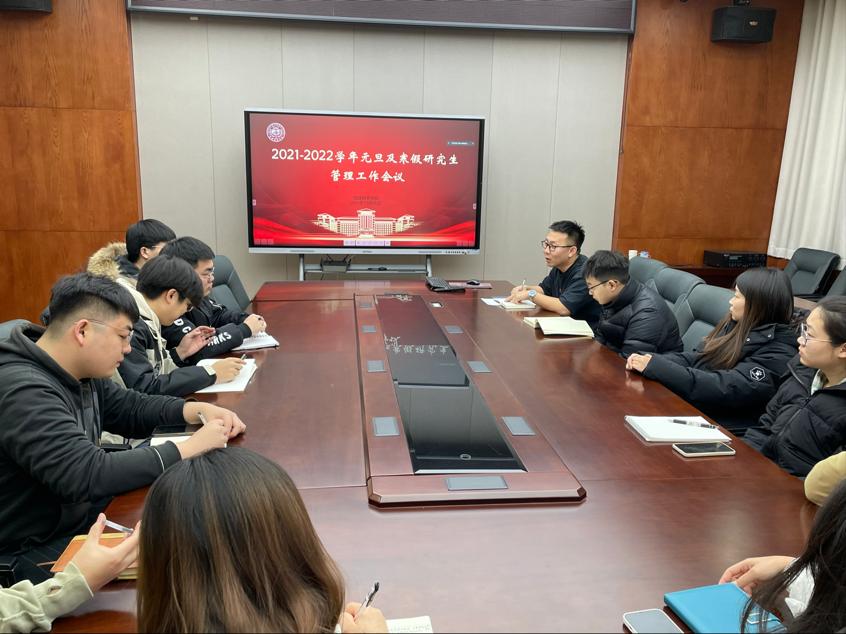 为加强2022年元旦及寒假期间研究生日常管理,确保公司研究生健康和校园安全,根据公司常态化疫情防控要求,结合公司实际情况,9428cn太阳集团古天乐于2021年12月31日下午在鸽子楼109-2会议室召开研究生假期管理工作会议。9428cn太阳集团古天乐研究生主要员工干部参加本次会议。会议由研究生辅导员郑岩主持。
