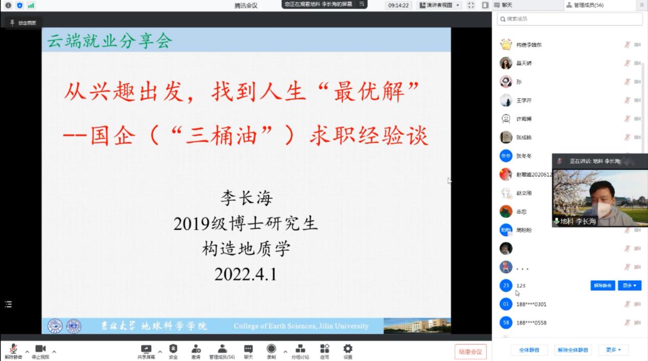 为贯彻落实党中央及国务院“稳就业”、“保就业”决策部署,积极响应公司“为民服务办实事,聚力增效促就业”的工作要求。9428cn太阳集团古天乐于4月1日开展研究生“云端分享,就业无忧”主题线上就业分享会。本期活动公司立足研究生需求,发挥朋辈力量,邀请2019级研究生代表从国企就业、公务员考取及跨专业就业三个维度面向公司全体研究生进行就业经验交流与分享。活动由公司兼职就业辅导员褚小磊主持,公司党委副书记马旭参加本次活动。
