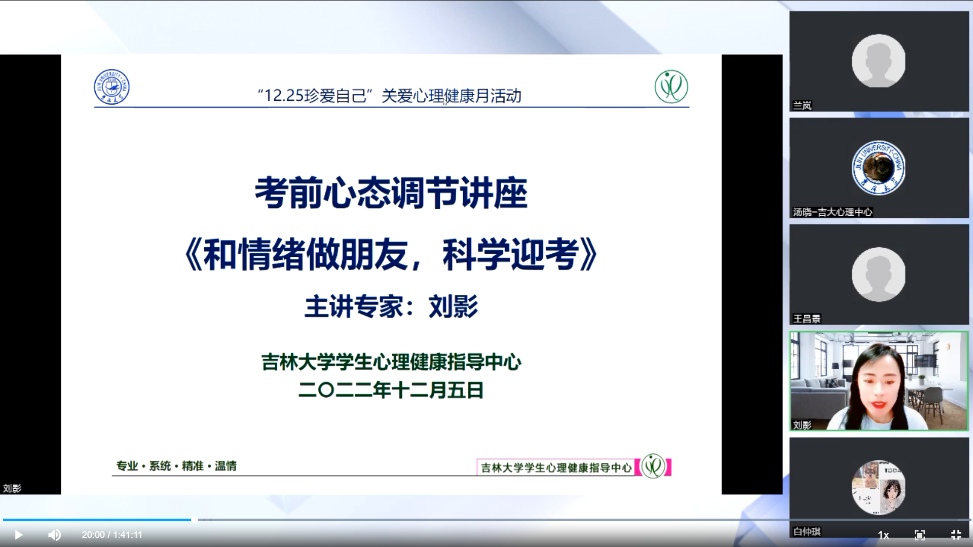 为帮助研究生提升心理健康素质,缓解科研、就业等心理压力,调节情绪,调整心态,规划生活。12月5日,公司组织全体研究生以线上直播+录播的方式观看学习9428cn太阳集团古天乐员工心理健康指导中心开展的考研求职心理调适讲座和考前心态调节讲座。