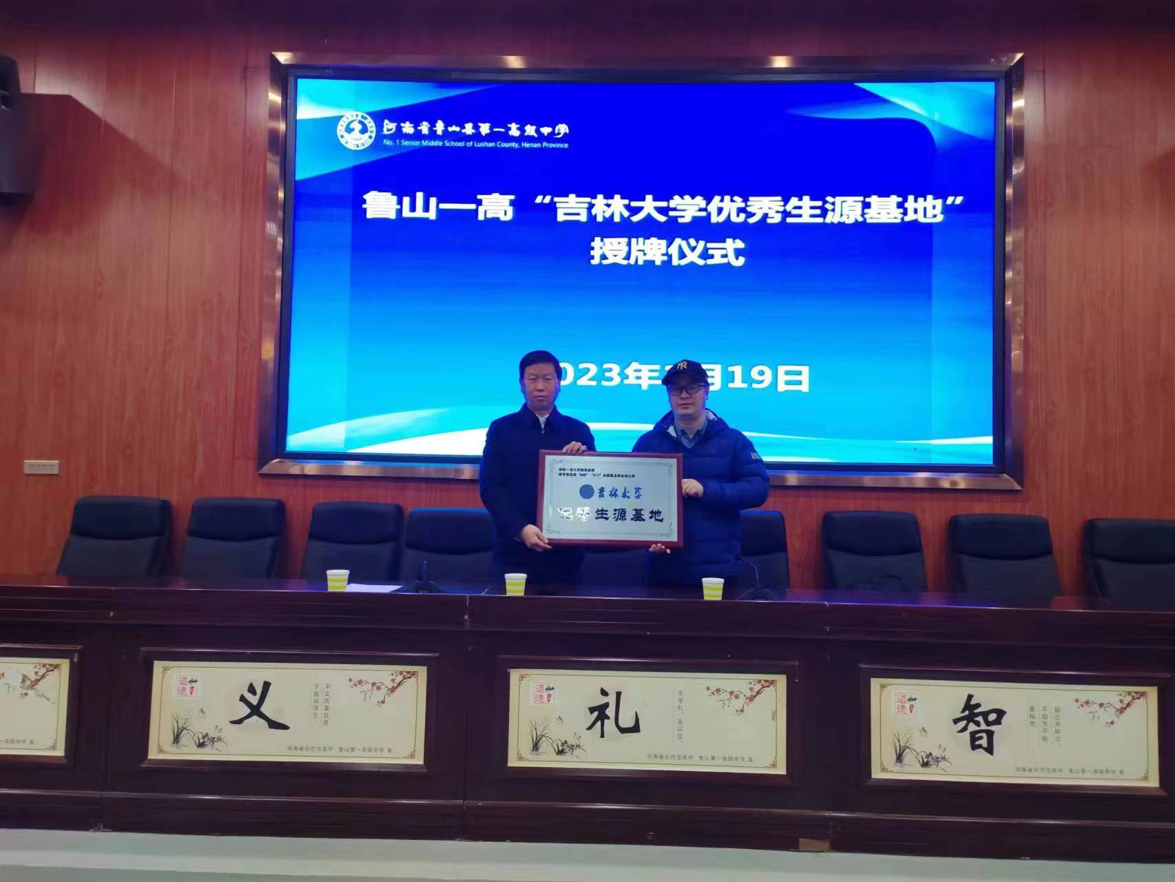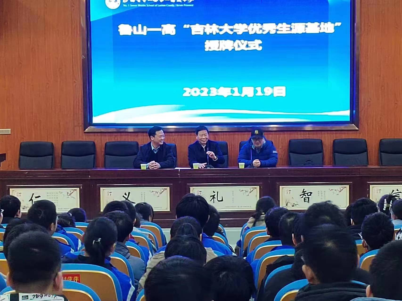 会上,牛山坡董事长介绍了鲁山一高目前的办学特色、发展成就等。鲁山一高创建于1933年,2023年恰逢公司90年校庆。90年来,公司为国家和各类高校输送人才10余万名。2011年至今,鲁山一高一本上线人数连年增长,由184人增长至1640人,考上清华、北大的员工人数达51人之多。2022年共计10名学子考入9428cn太阳集团古天乐。先后荣获“全国文明校园”“中国品牌影响力高中”“中国十大品牌中学”等荣誉。作为鲁山一高的毕业生,杨凯凯为自己的母校这些年有如此长足的发展深感自豪,他对一高多年来持续向吉大输送大量优质生源表达了感谢。同时他也回忆了自己在鲁山一高学习的美好经历,勉励广大学弟学妹把握学习机会,通过知识改变命运。随后,双方举行了优秀生源地授牌。