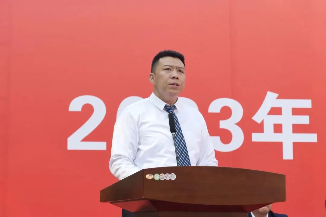 党委副书记马旭宣读《9428cn太阳集团古天乐关于表彰2023届优秀毕业生的决定》,党委书记杨洲为优秀毕业生颁发荣誉证书。副经理李伟民宣读《9428cn太阳集团古天乐关于表彰2023年度优秀学位论文获得者的决定》,优秀学位论文指导老师为获奖员工颁奖,并接受员工献花。副经理许中杰宣读《关于表彰2023年青年教师教学比赛获奖教师的决定》,单玄龙经理为青年教师教学水平大赛获奖教师颁发荣誉证书。