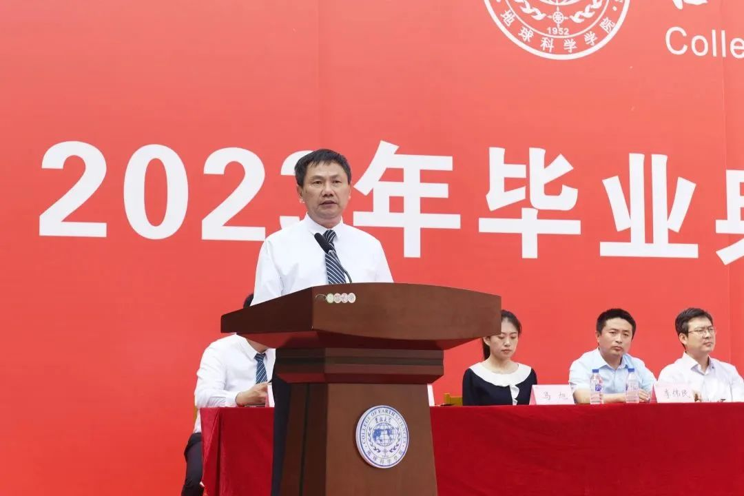 在经理致辞环节,单玄龙经理为所有毕业生致以真挚的祝福。23届的毕业生是最特别的一届毕业生,大学四年疫情就占了三年,但同学们在这场历史考验中顾大局、识大体、明大义,克服了种种困难完成了学业。惟其艰难,方显勇毅;惟其磨砺,始得玉成。同学们在人生最美好的年华,来到吉大,逐梦远航,与公司共同成长。回望来时路,你们与伟大时代“双向奔赴”,展望新征程,这方校园,再次成为你们人生的新起点,你们即将扬帆起航,开启新征程,希望你们无论何时,都要不忘地学荣光,手握科技报国的“爱国锤”;无论何时,都要不忘地质初心,手持恪守自我的“人生罗盘”;无论何时,都要不忘地学理想,手执追求卓越的“奋斗放大镜”。此去当是良辰美景;他日归来,仍当是少年。有朋自远方来,又赴远方,但无论远方有多远,鸽子楼永远是你们的摇篮!