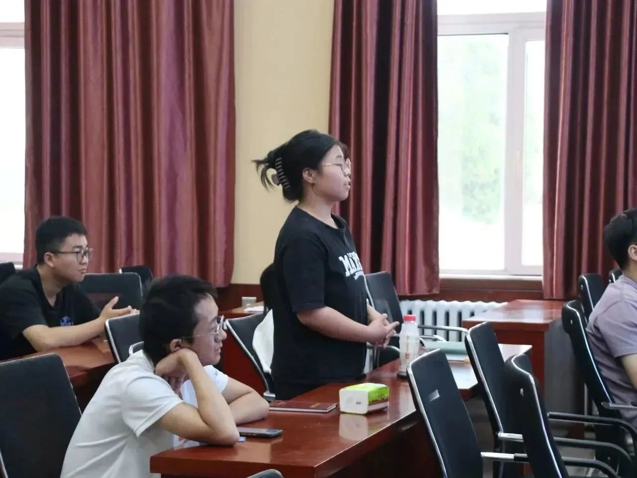 报告结束后,参会的老师与员工同于祥江教授就相关问题进行了积极的提问与交流,大家对美国加州地区区域地质实习相关内容有了更详细的了解,开阔了师生们的视野、满足了师生们的好奇心、端正了员工们的实习态度。