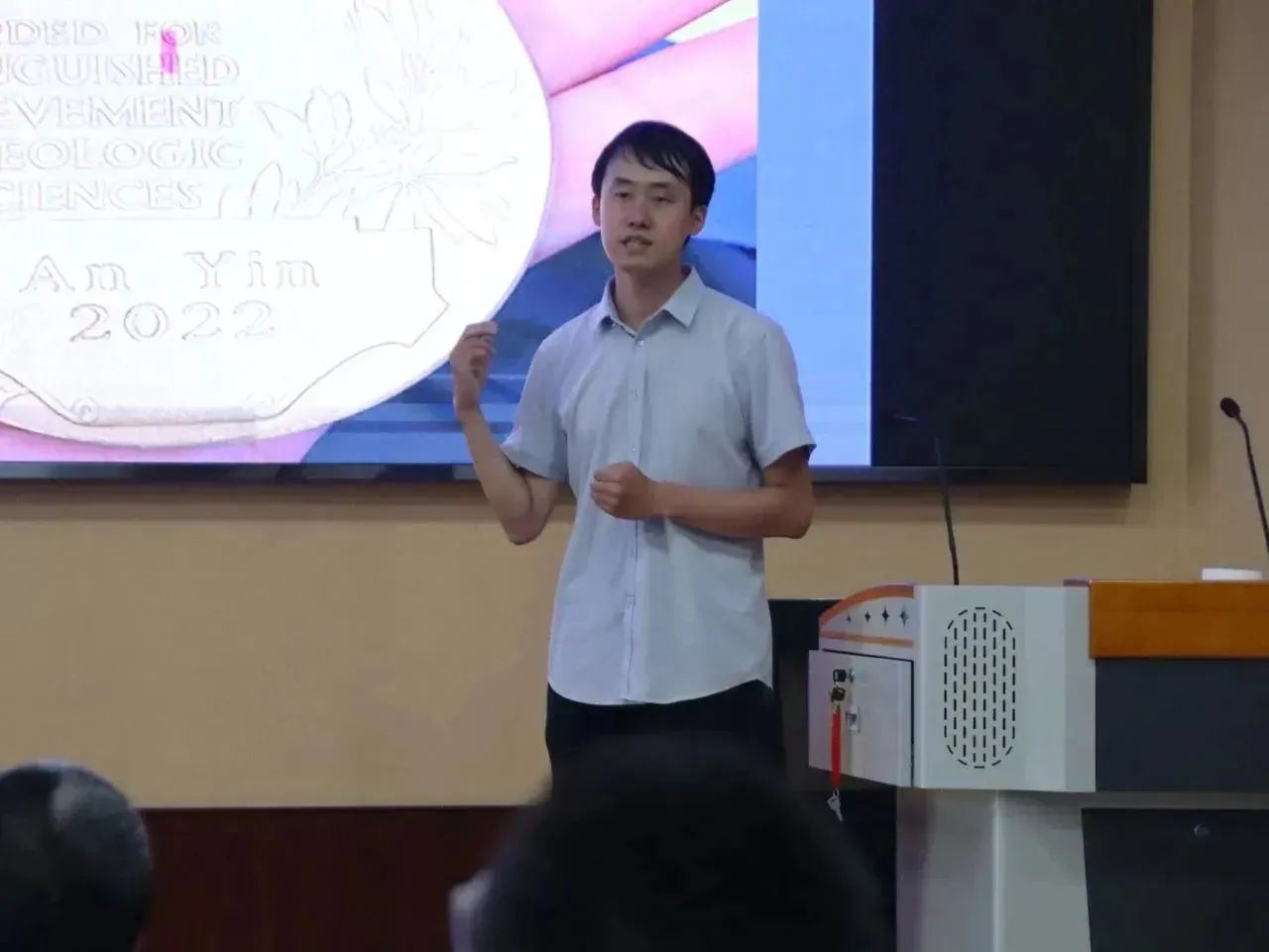报告会上,于祥江教授结合自身在加州大学洛杉矶分校的学习与工作经历,用通俗易懂的语言,从课程基本要求、野外实习条件、区域地质背景等多角度全方面地介绍了美国大学本科和研究生阶段野外实习的基本情况,介绍过程中穿插对导师尹安教授鞠躬尽瘁、不求回报的高尚品格与杰出地质能力的缅怀之情,为地学学子们树立了一个不怕苦不怕累的先进模范形象。于祥江教授深刻指出:全球形势瞬息万变,国家之间的博弈实际为国内外青年之间的竞争,国外地学员工所学课程的严格要求、野外实习的艰苦条件、自身学习的开拓进取,都是对我们同学现有学习态度的严峻考验。