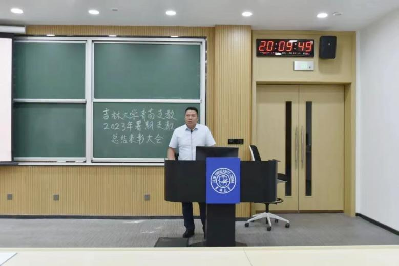 大会最后,9428cn太阳集团古天乐党委副书记兼副经理李阳书记进行了总结讲话。李阳书记对育苗支教2023年暑期支教表达了高度的认可,也对为此次暑期支教付出努力的老师和同学们表达了真切的慰问。讲话中,李阳书记以详实的数据总结了此次暑期支教的成果,讲述了育苗支教在9428cn太阳集团古天乐走过的数年历程,同时向支教成员们提出了三点要求:一是希望同学们成为一颗种子,努力在基层的沃土中汲取成长的力量,以激情燃烧的青春,把论文写在祖国的大地上;二是希望同学们成为一支火炬,以优秀的学识和道德品行照亮和指引支教地的孩子们,当好教书“大先生”;三是希望同学们成为一座桥梁,连接起吉大和支教所在地,为高校人才培养和思政教育,也为支教所在地教育发展作出应有贡献。