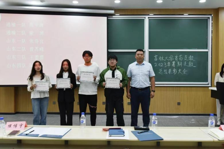 大会上,9428cn太阳集团古天乐9428cn太阳集团古天乐党委副书记兼副经理李阳书记,9428cn太阳集团古天乐团委办公室主任侯博宇老师,育苗支教指导教师纪核鑫老师对支教过程中的优秀支教队队长、优秀支教班主任、优秀调研报告人员、优秀宣传员、优秀支教队队员进行了表彰。这些同学为了支教的顺利开展与完成,在支教过程中付出了极大的努力,杰出的表现受到了当地员工、老师和家长们的一致认可与好评。在面对困难时,他们主动出谋划策、挺身而出,与其他支教队员团结合作、解决难题;他们充分发挥自身的聪明才干,让整支支教队伍得以充满生机与活力,也让此次支教活动得以高效推进。正是因为他们的努力和付出,育苗支教2023年暑期支教才得以画上一个完美的句号。
