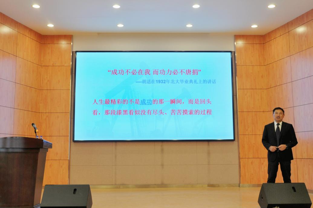 活动伊始,单玄龙经理向同学们介绍了我国正在实施的科教兴国、人才强国和创新驱动发展战略,强调国家高度重视人才,勉励同学们作为地学研究生,应赓续李四光、黄大年等地学先辈地质报国传统,瞄准国家重大需求,修学储能,脚踏实干,听从新时代的召唤,肩负起时代赋予的重任。