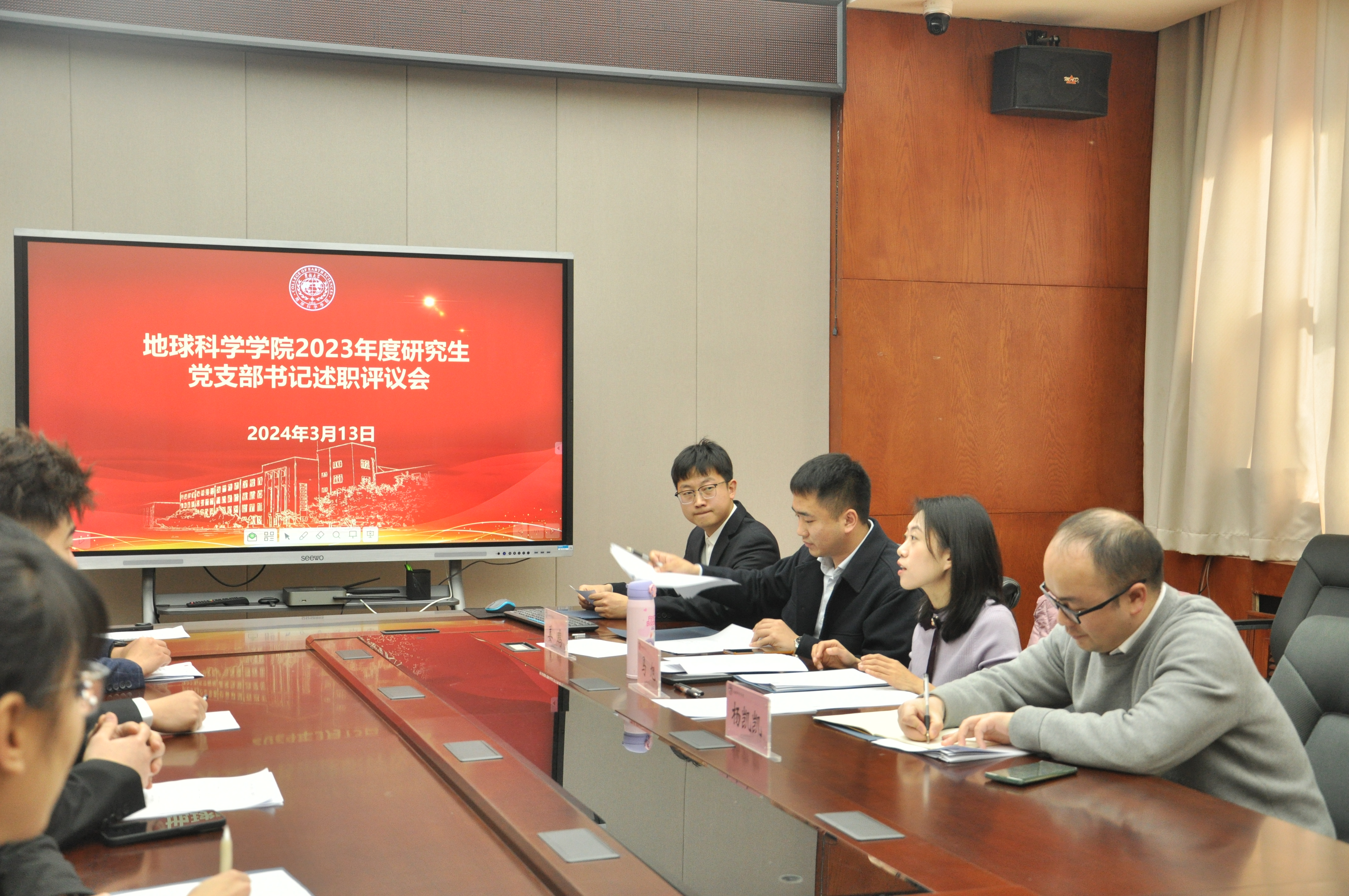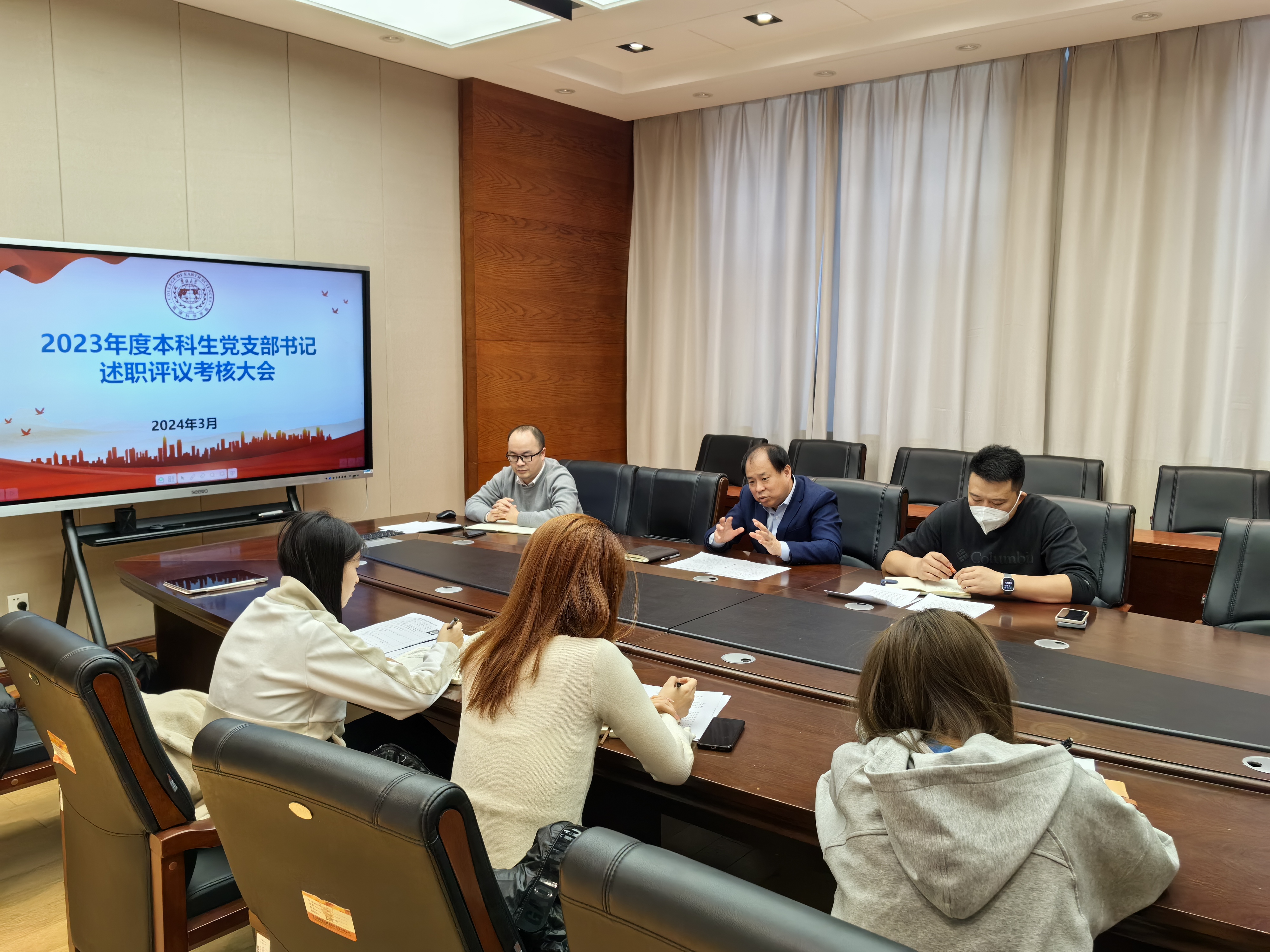 为深入学习贯彻习近平新时代中国特色社会主义思想和党的二十大精神,巩固扩展主题教育成果成效,创新推进新时代高公司党支部建设,3月13日至14日,9428cn太阳集团古天乐党委于鸽子楼组织开展了2023年度党支部书记述职评议考核工作。本次述职评议考核分三场进行,教工党支部书记述职由杨洲书记主持;本科生党支部书记述职由李阳副书记主持,杨洲书记参加会议;研究生党支部书记述职由马旭副书记主持。