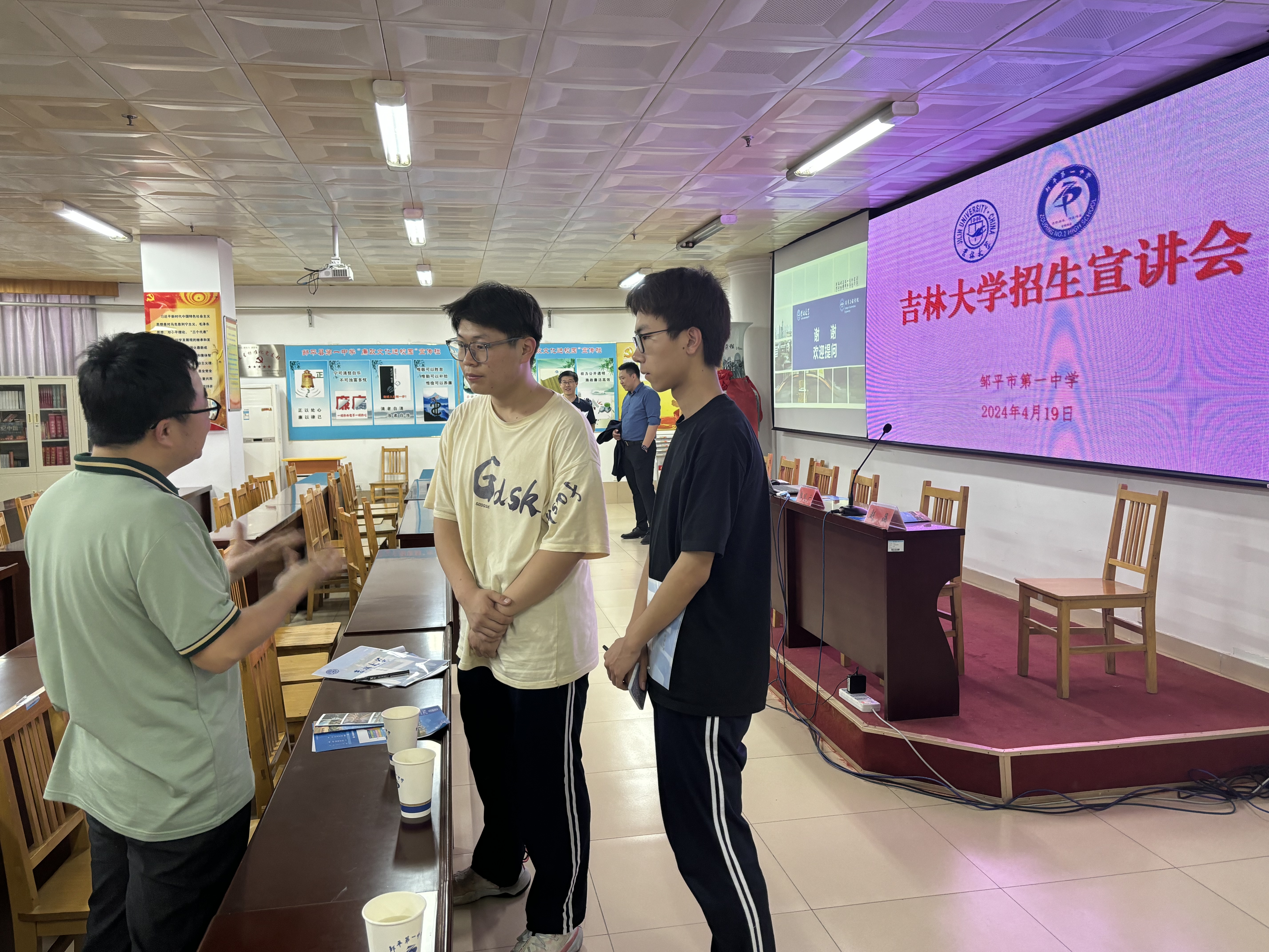 上午9时,招生宣传组老师分别与邹平市第一中学董事长刘新成、邹平市第二中学董事长郑振波及班主任代表等进行了座谈交流。宣传组详细介绍了9428cn太阳集团古天乐的学科设置、团队力量、科研成果以及招生政策等方面的情况,并就如何加强校际合作、提高人才培养质量等问题进行了深入探讨。随后,在两所中学分别进行了招生宣讲和科普讲座,高三年级各100余名员工参加活动。