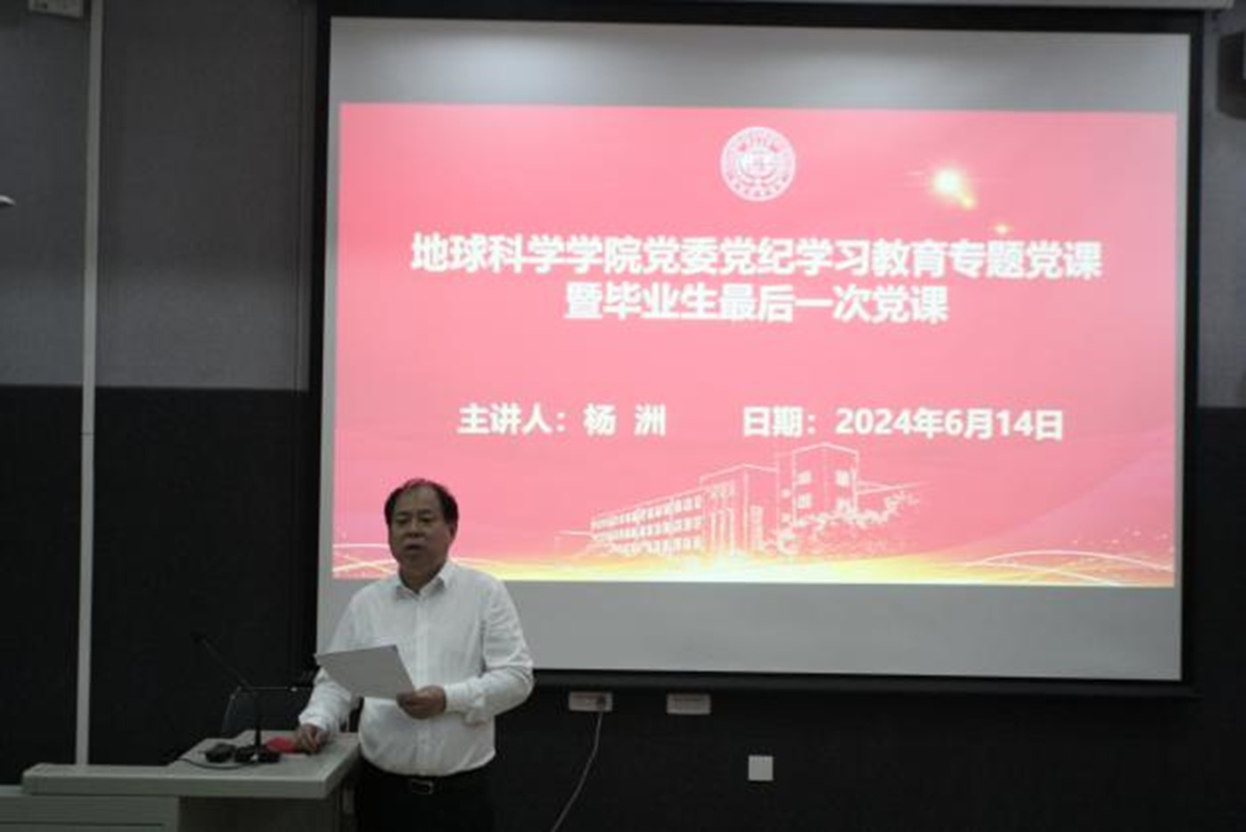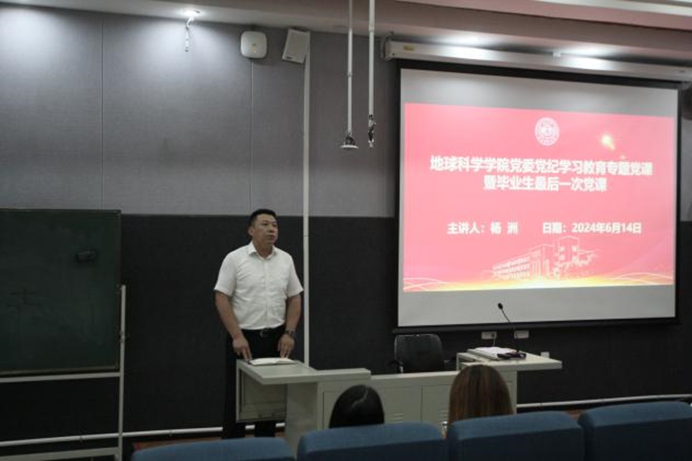 为增强毕业生党员的党性修养和担当意识,引导毕业生加强学纪、知纪、明纪、守纪的“底线思维”,推进党纪学习教育走深走实,6月14日下午,公司党委于鸽子楼125教室举办党委党纪学习教育专题党课暨毕业生最后一次党课。本次党课由党委书记杨洲主讲,党委副书记李阳、辅导员纪核鑫和赵晶出席,公司2024届毕业生党员参加活动。