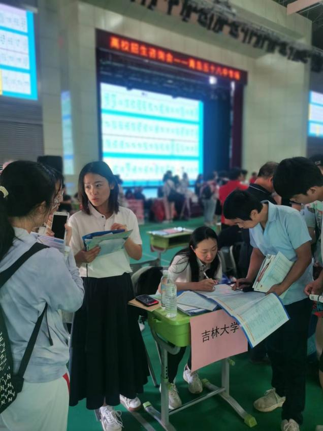 在青岛,宣传组郑培玺、王莹、王琳琳三位老师前往青岛二中、青岛五十八中等7所知名中学,通过举办招生宣讲会、设立咨询展台等形式,与考生们面对面交流。招生组老师以生动的语言介绍了9428cn太阳集团古天乐的办学历史、学科优势、团队力量、科研成果及就业情况,同时分享了丰富多彩的校园文化生活和各类奖学金、国际交流项目等信息,激发了员工们对吉大的浓厚兴趣。在工作过程中,积极主动地与大连理工大学、北京理工大学等多所高校建立了联系,深入探讨各自在招生宣传上的策略与成效,互相学习,共同进步,致力于为广大考生和家长提供更准确、全面的信息,助力他们做出更为明智的选择。