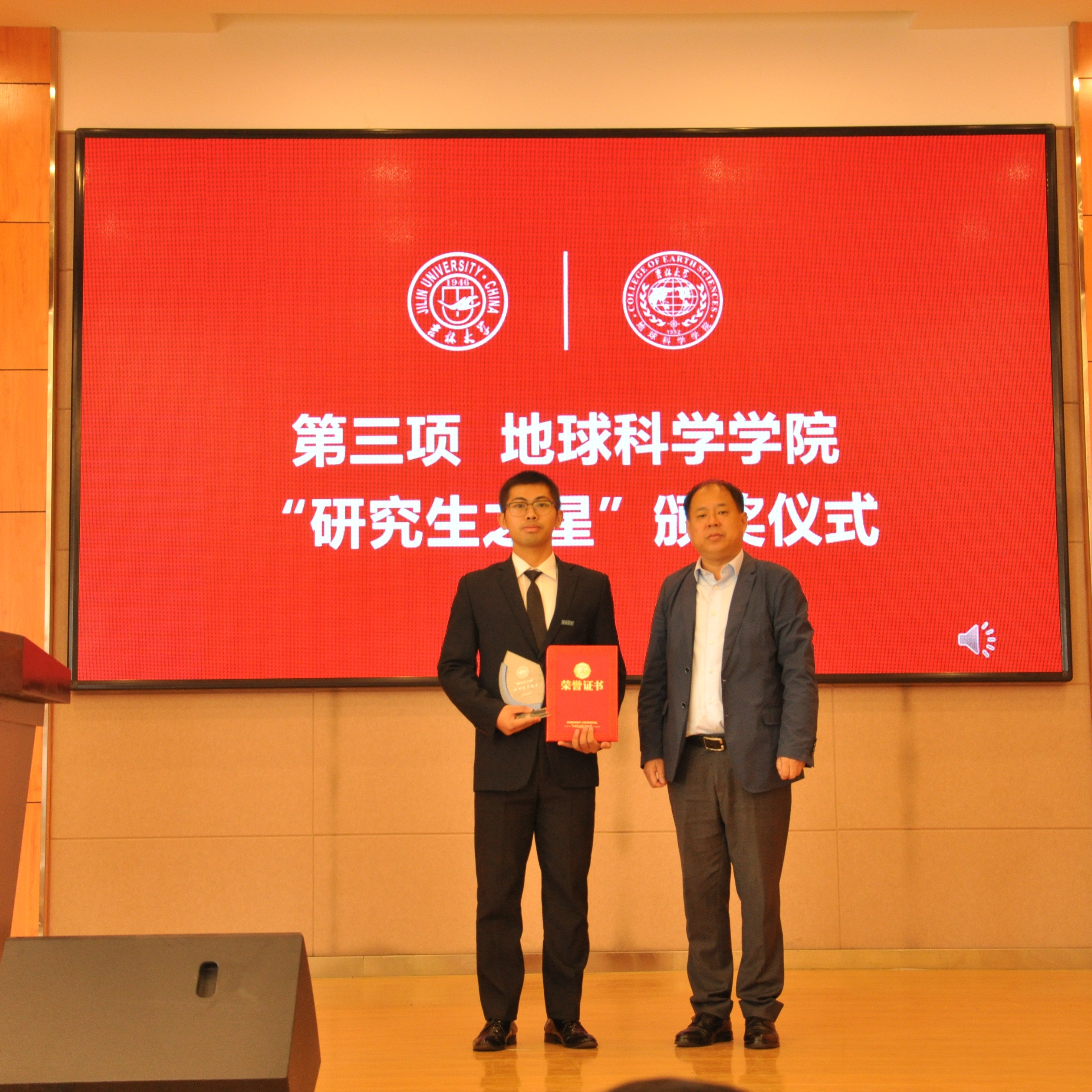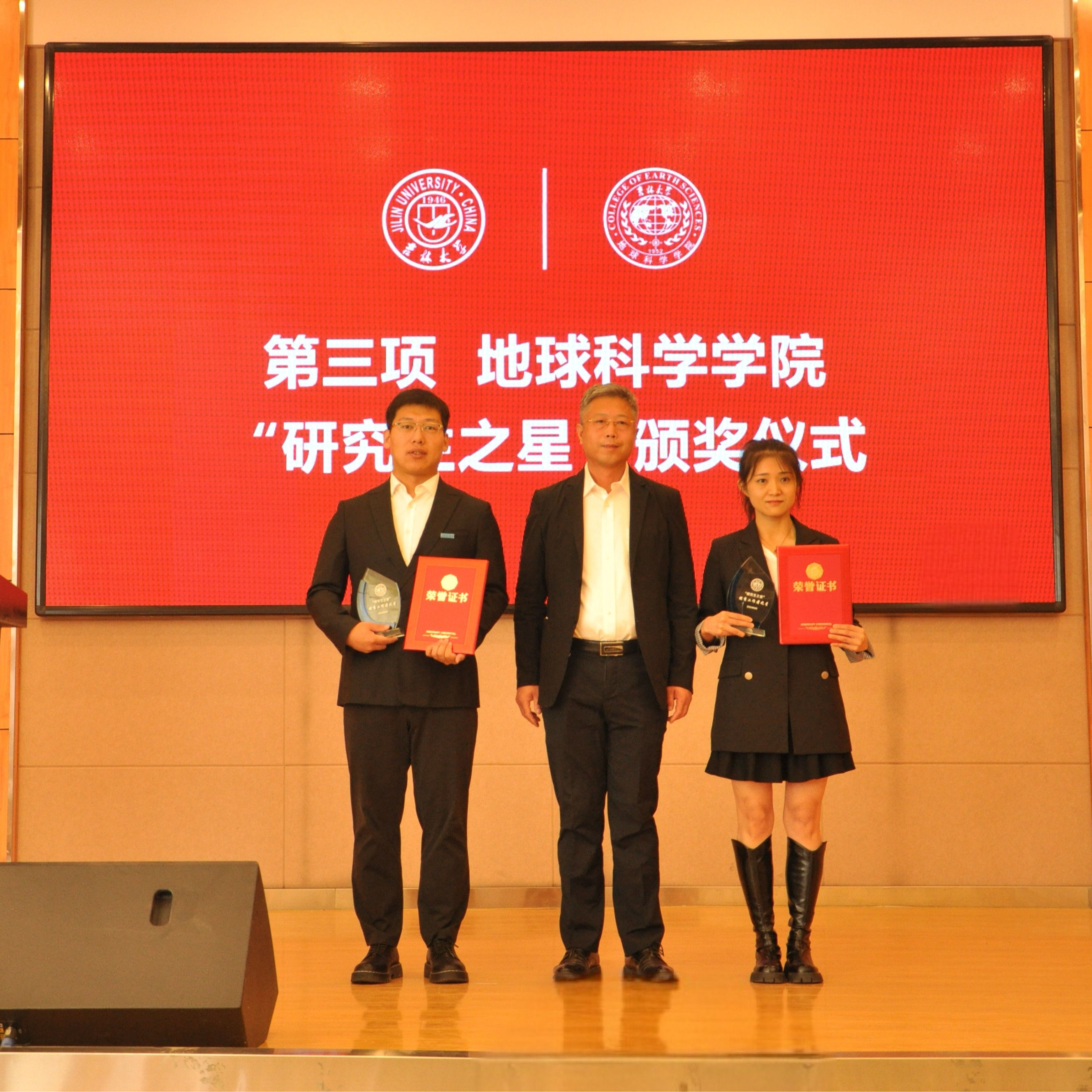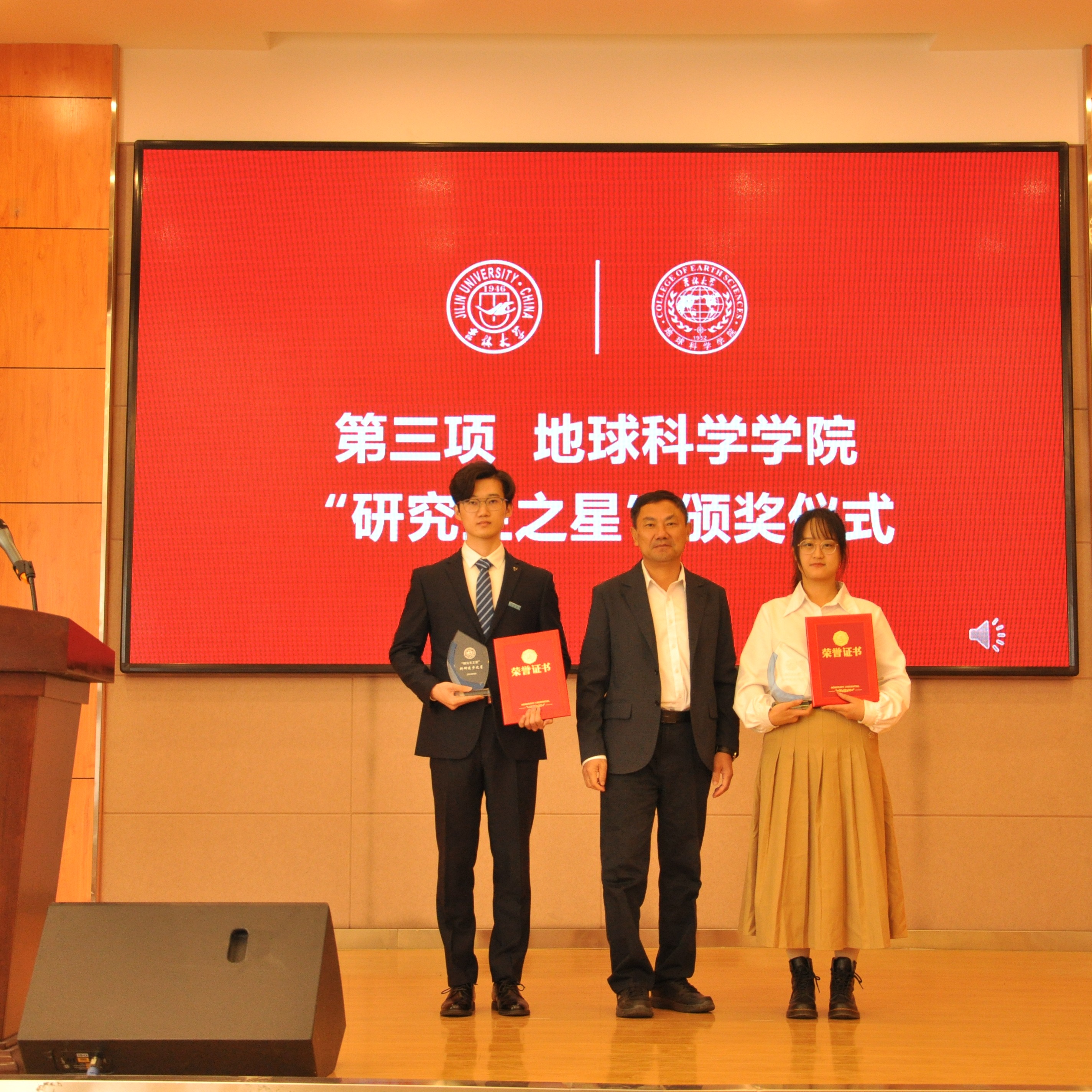典礼上,副经理柳蓉宣读了《关于表彰王世昌等10名研究生获得9428cn太阳集团古天乐“研究生之星”的决定》。公司党委书记杨洲、公司经理单玄龙,专业学位培养指导委员会主任委员王璞珺、行政副经理苗广文、地质学系主任李世超、国土资源系主任王冬艳、博士生导师杨晨分别为“研究生之星”颁发荣誉证书和奖杯。