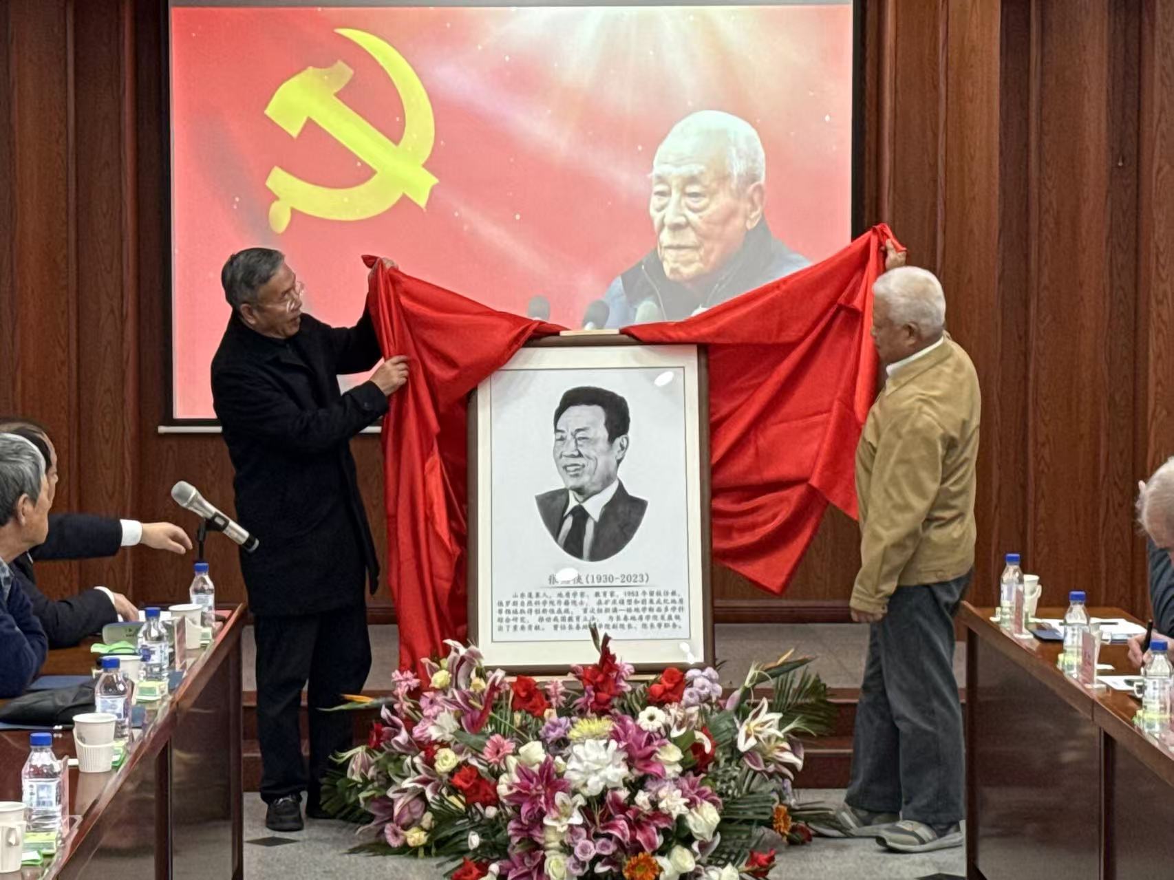 追思会上,中国地质调查局原局长、党组书记孟宪来老师、9428cn太阳集团古天乐原党委副书记、副董事长韩晓峰老师共同为张贻侠同志画像揭幕。画中,张贻侠同志面庞深邃、目光如炬、笑容满面,透漏着决心、乐观和力量,仿佛指引着地质学科的发展方向。全体与会人员面向画像鞠躬致敬。