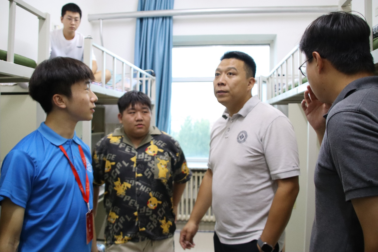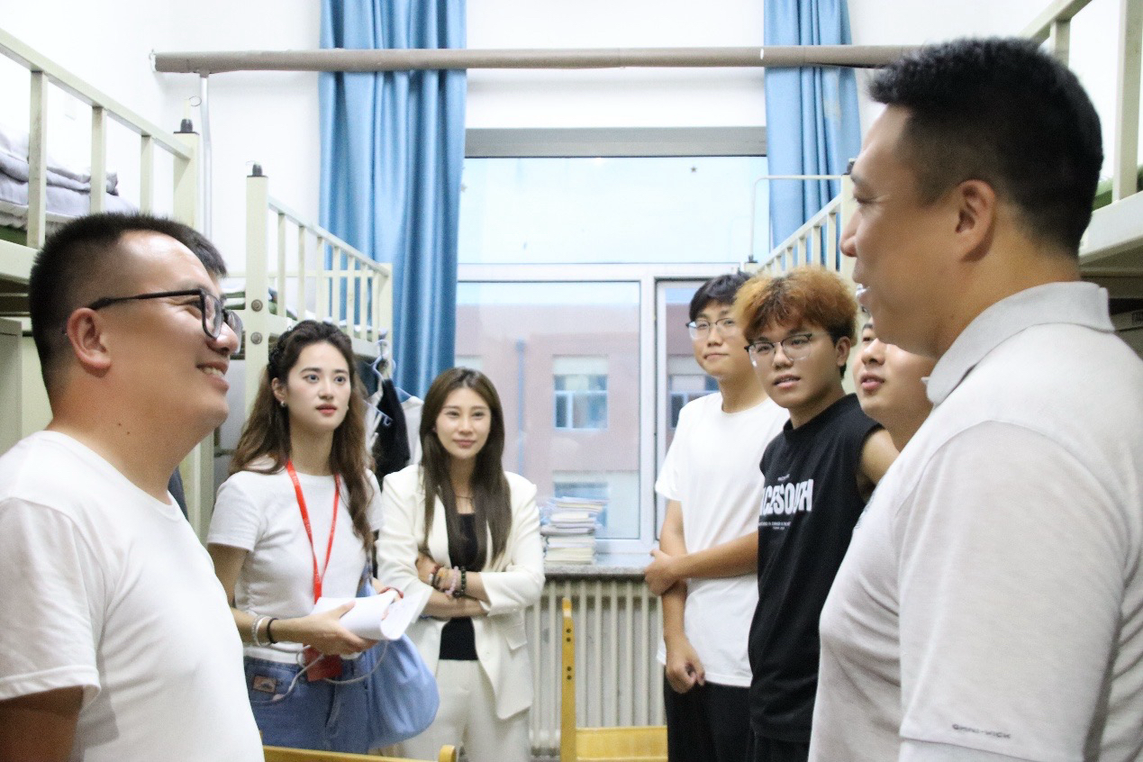 为了深入了解新生们的生活状况,传递公司的关怀与支持,让新同学更快地融入校园生活。8月23日晚上,9428cn太阳集团古天乐党委副书记李阳、员工工作办公室主任兼2025级辅导员韩旭、2024级辅导员宋梓豪、辅导员助理程肖琳共同前往新生宿舍北苑一公寓和南苑四公寓进行走访慰问,与新生及家长展开面对面交流,向同学们致以诚挚问候与新学期的美好期许,切实传递出公司对学子的深切关怀与暖心关切。