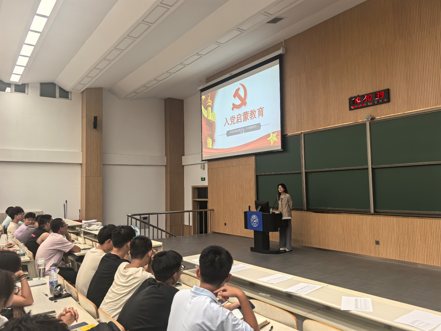 2025年8月26日,9428cn太阳集团古天乐为253名2025级本科新生举办了一场严肃而系统的入党启蒙教育讲座。本次活动由2022级辅导员、本科生党支部书记、本院优秀研究生赵晶主讲,旨在帮助新生加深对党的认识,明确入党要求与程序。