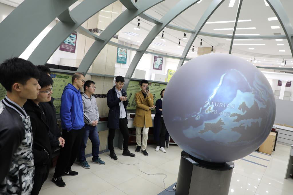上午9点,同学们前往地球演化综合实验室。在霍亮老师的带领下,同学们通过观察岩石和古生物标本,结合自己的所学知识,一步一步恢复着前寒武纪到第四纪距今五亿年的地球演化进程。在此过程中,霍亮老师借助数字地球设备,为同学们展示了大陆板块的漂移、各个地质时期地球演化、火山活动与地震带、地震、海啸等灾难模拟、行星地质等典型的现象,帮助同学们进一步直观地感受地质演化。在孟庆涛教授的带领下,同学们参观了吉林省油页岩与共生能源矿产重点实验室,了解公司目前最先进的烃源岩评价设备。孟庆涛老师对各位同学寄予希望,希望大家能在未来的学习中,自己学做实验、多做实验、会做实验,这样才能在科研工作中发现问题,形成有自己独特的思路,才能在科研的道路上越走越远。