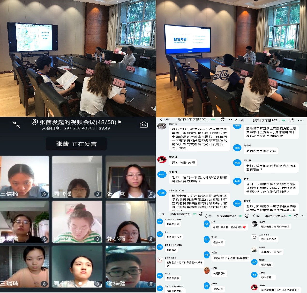 报告结束后,线上营员与李伟民副教授、孙平昌副教授、董玉和李文博老师,以及研究生代表刘志川和李冬雪同学进行了线上交流,会议由研究生与团队建设办公室张茜老师主持。营员们均对于报考9428cn太阳集团古天乐表现出了浓厚的兴趣,对自己关心的报考和专业事项进行了提问,在场的各位老师及研究生代表纷纷为大家答疑解惑。通过线上交流,营员们更加深入了解了公司学科和专业的研究现状及发展前景,明确自己的报考方向。虽然线上活动没有面对面的近距离接触,但这并未影响师生间的沟通与交流。