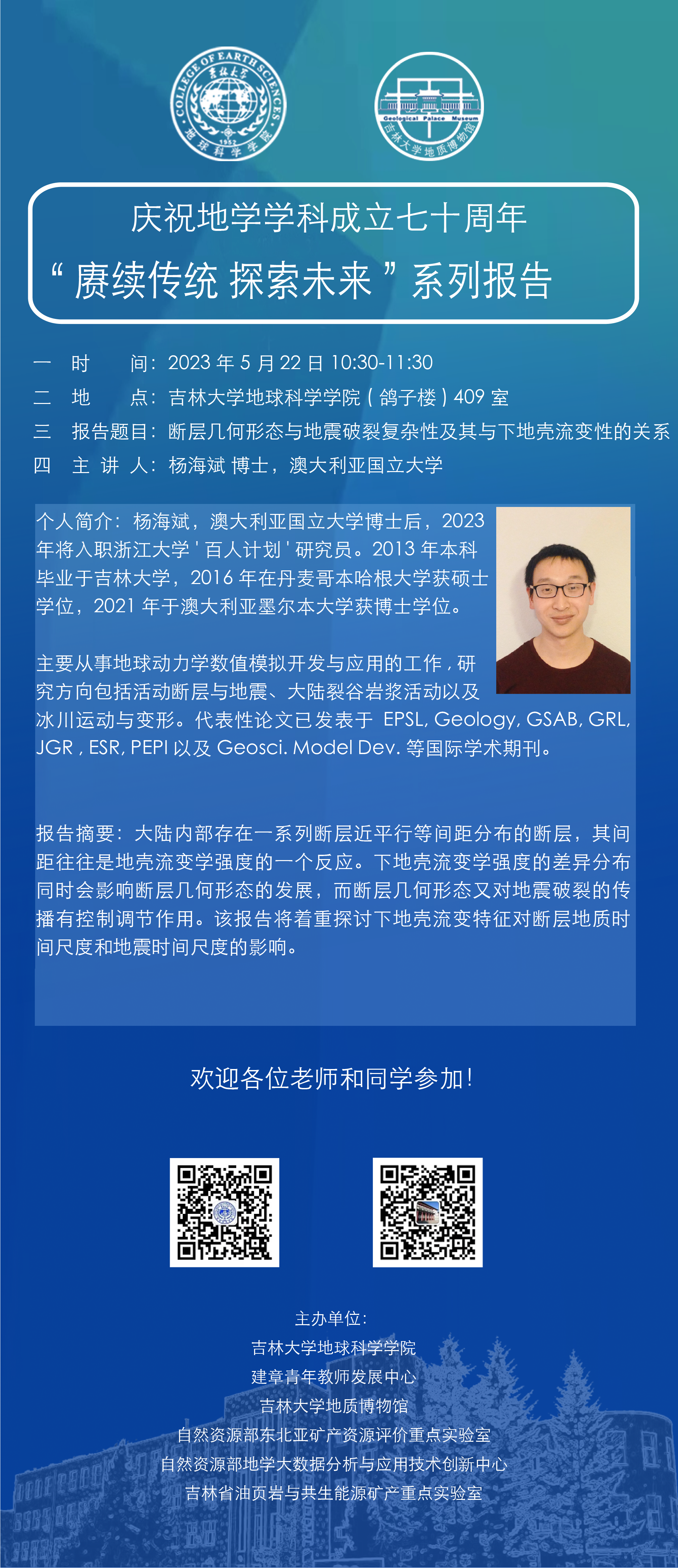 庆祝地学学科成立七十周年 “赓续传统 探索未来”系列报告第三十九期