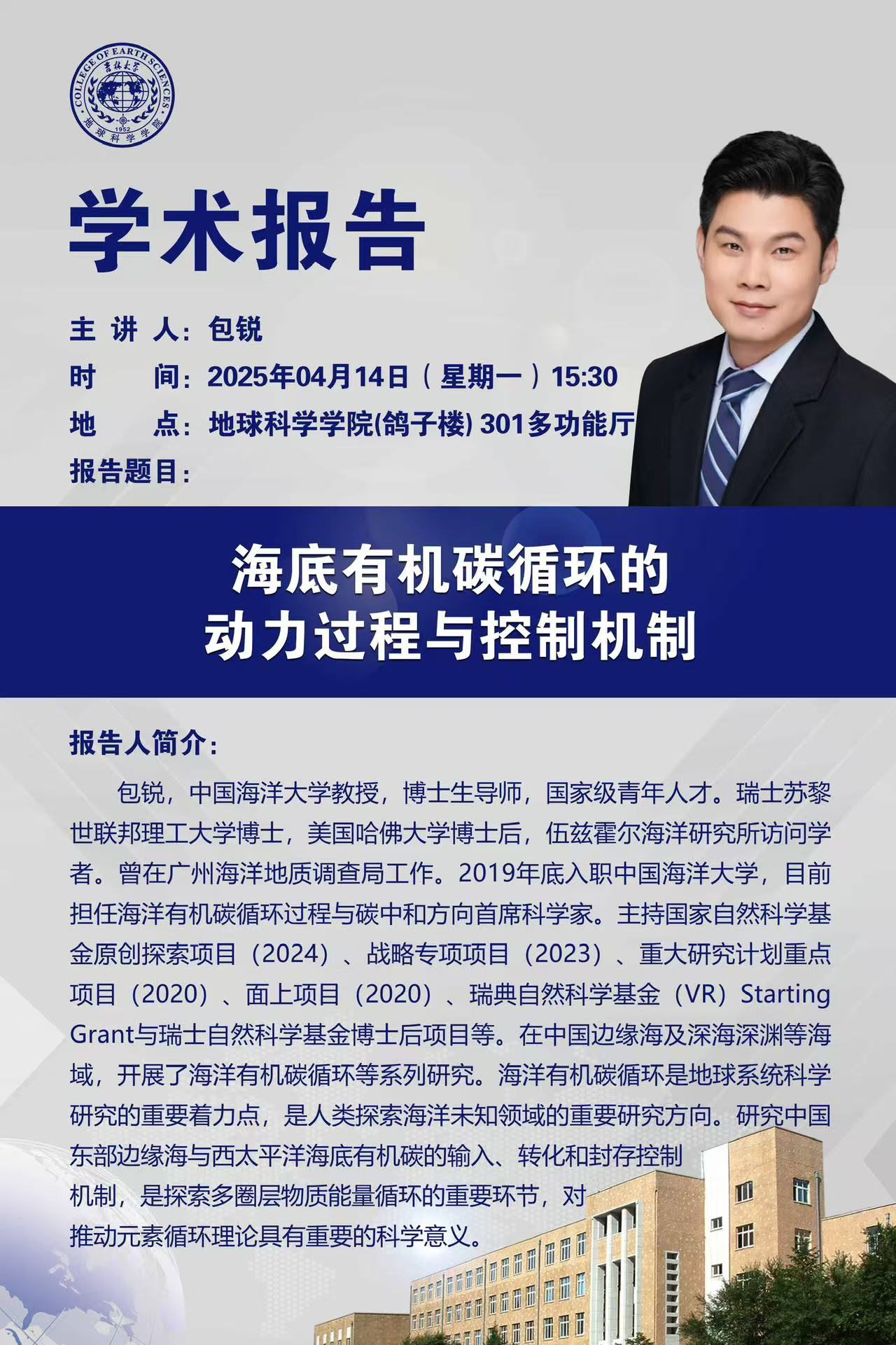 中国海洋大学包锐教授学术报告