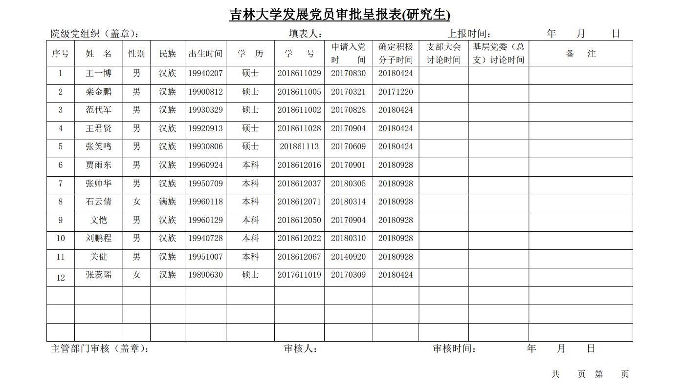 为了加强对发展党员工作的民主监督,确保发展新党员的质量,现将王一博、贾雨东等12名发展对象的有关情况进行公示。