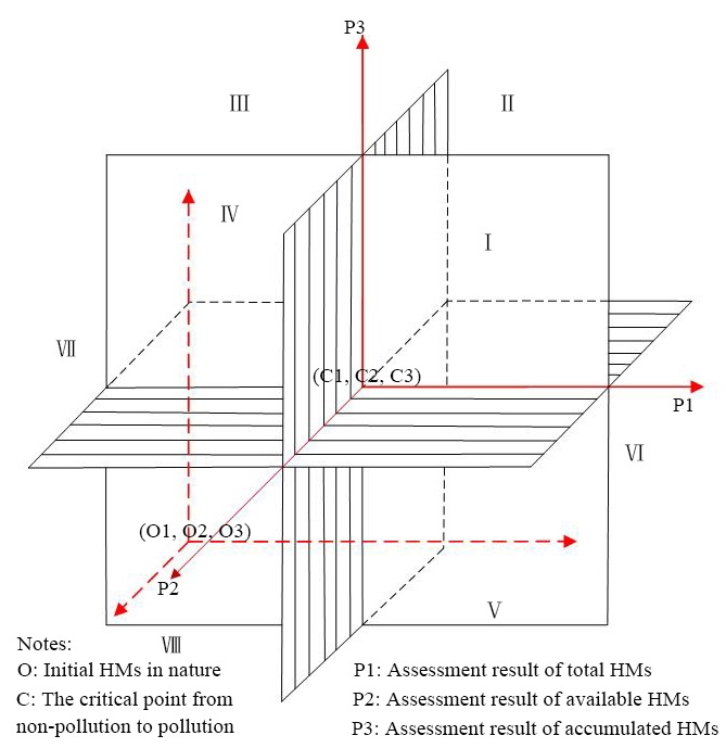 (2)基于突变级数理论(Catastrophe Theory),应用蝴蝶突变模型搭建“三位一体”污染评价体系(图2),依据数学方法寻找农田土壤重金属全量、有效态含量与作物籽实富集量由量变到质变的临界点。该方法突破了传统评价方法完全依赖于土壤重金属全量浓度的特点,较为全面、综合地反映了土壤-作物系统的重金属污染状态。