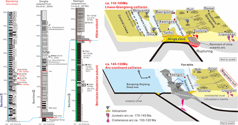中特提斯洋(国内亦称班公湖-怒江特提斯洋)的消亡时限和过程是青藏高原基础地质研究领域的热点问题之一,它不但对约束青藏高原拉萨-羌塘地体碰撞的时间和过程,探讨印度-欧亚大陆碰撞之前青藏高原的初始地壳生长和隆升等科学问题具有重要意义,而且关系到青藏高原中部侏罗-白垩纪世界级规模矿产资源的成矿地质背景和成矿规律的准确认识。目前有关中特提斯洋的消亡时限和过程争议较大。沉积岩是地表构造运动忠实的记录者,因此,班公湖-怒江缝合带及周缘的沉积岩有可能记录了中特提斯洋的汇聚消亡时限和过程。