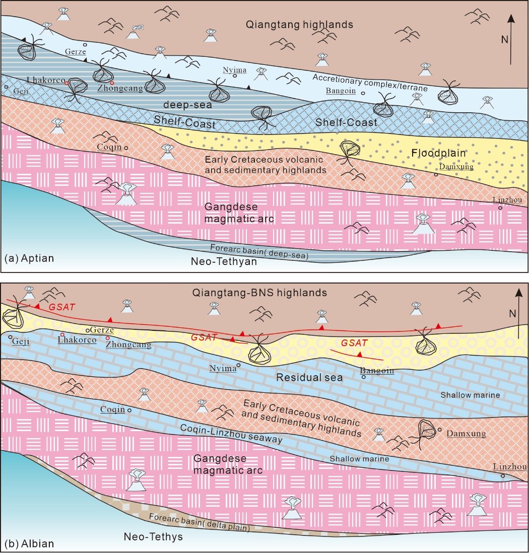 研究结果显示:1)狮泉河-纳木错蛇绿混杂岩带中阿索、中仓和拉果错地区均存在深海浊积岩(图1),这些浊积岩的沉积时代均为早白垩世Aptian期;2)该期浊积岩既存在有北侧羌塘地体提供沉积物的浊积岩,也存在沉积物主要来源于南侧拉萨地体的浊积岩;3)狮泉河-纳木错蛇绿混杂岩带所代表的洋盆在早白垩世Aptian期仍然存在,且阻断了大洋南侧的拉萨地体和羌塘地体的沉积物交换(图2)。