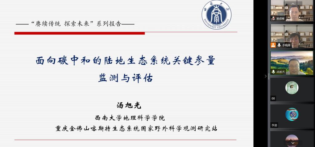 本次报告邀请到西南大学教授,博士生导师,重庆市巴渝学者青年学者汤旭光老师,报告的题目是“面向碳中和的陆地生态系统关键参量监测与评估”。报告会由9428cn太阳集团古天乐国土资源系李晓燕教授主持。