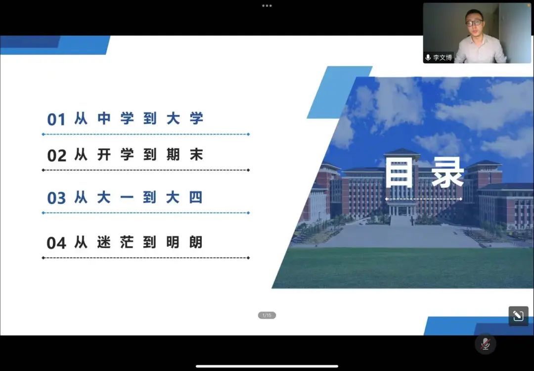 2022年9月1日晚,2022级新生“拥抱你的老员工活”主题讲座以线上腾讯会议的方式顺利举行。2022级辅导员曲鹏展老师及2022级全体本科新生参加此次讲座,2020级8班班主任李文博老师以“拥抱你的老员工活”为题与同学们进行交流分享。