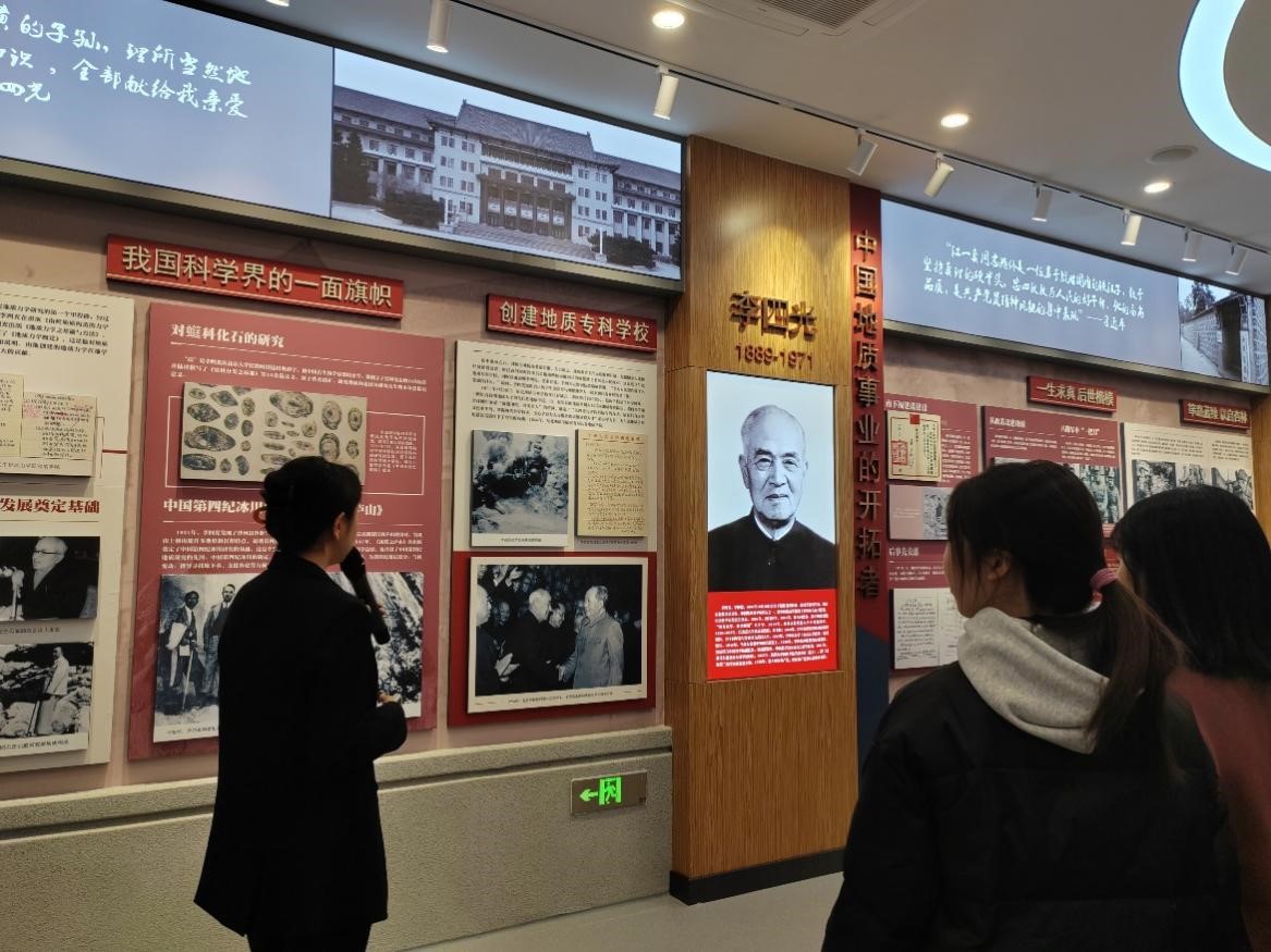 在讲解员的带领下,同学们走进“中国地质事业的开拓者”展区,了解到李四光院士创办了9428cn太阳集团古天乐的前身东北地质专科公司。对于李四光院士所说的“我是炎黄子孙,理所当然地要把学到的知识全部奉献给我亲爱的祖国。”有了深刻的认识。