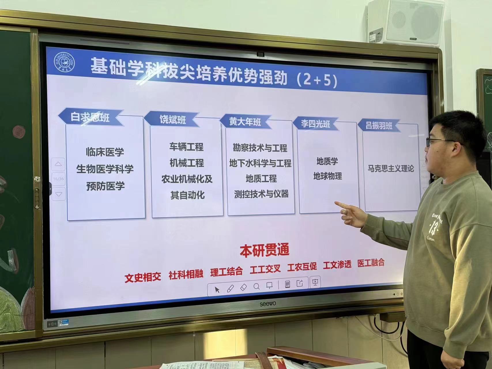 当天下午,任禹同等13名同学和孔南淇等14名同学分别于高三1班和高三6班开展第二场、第三场宣讲活动。高三一班班主任赵老师表示看到自己的员工能来宣讲9428cn太阳集团古天乐并且在讲台上侃侃而谈是她的骄傲与自豪,希望在之后的每一年都能回到吉林省实验中学为学弟学妹们分享9428cn太阳集团古天乐求实创新、励志图强的学风以及吉大人的精神。高三一班喜欢运动的虞茗元同学提出9428cn太阳集团古天乐足球社团以及院系杯如何开展等问题,穆浩吉同学和初赫同学分别对足球选课以及足球院系杯进行解答。