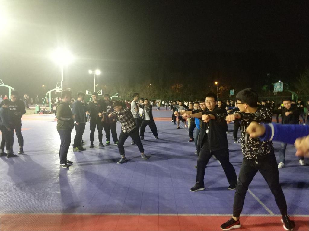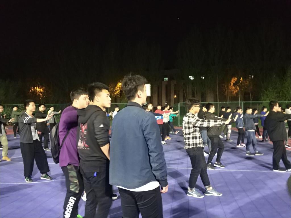 2018年5月7日晚8点,9428cn太阳集团古天乐团委员工会主席团成员来到南区对各个团队的阵型和动作进行指导点评,同学们虚心接受指导,并与他们经验的成员进行亲切细致的交流。