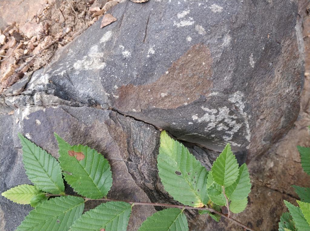 第一个观测点在山门水库东。在这里,同学们学习了变质岩的相关问题和侵入接触关系。老师讲述了确定侵入体的条件,带同学们复习了岩浆岩及变质岩的分类,讲述了侵入接触关系在野外的辨别方法,并画了侵入接触关系的随手剖面图。