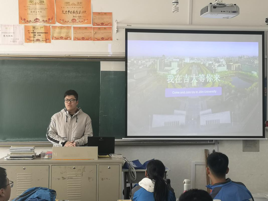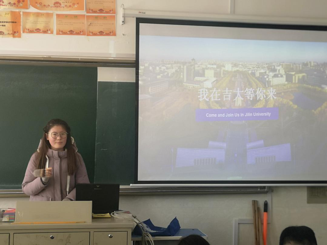 接下来团队通过PPT进行详细的介绍,从吉大简介、吉大员工、人才培养、国际合作、就业升学五个招生优势深入展开讲解,让同学们对吉大的认识更进一层。虽然学习压力很大,备考时间也很紧张,但是同学们都很认真地在听。