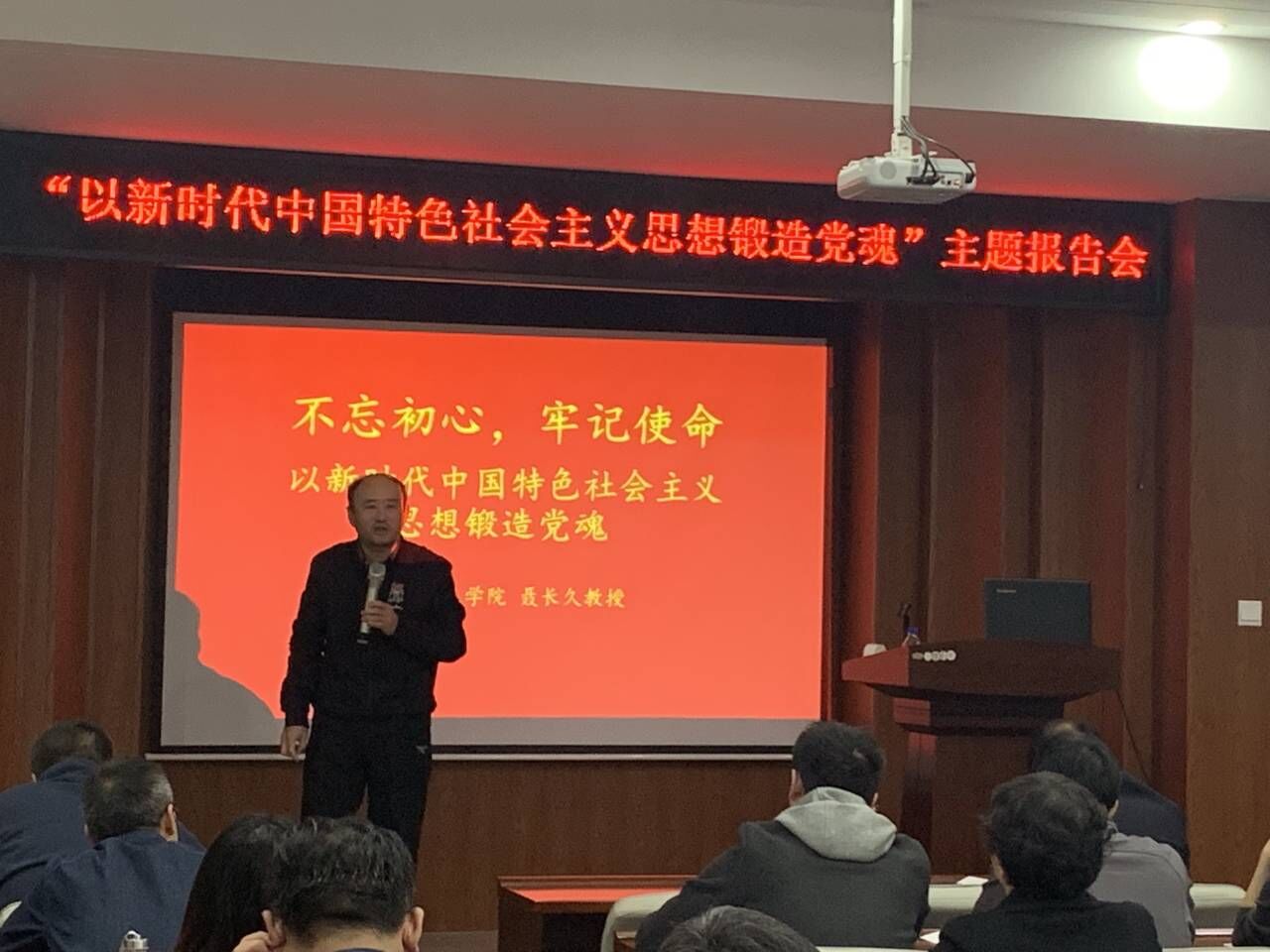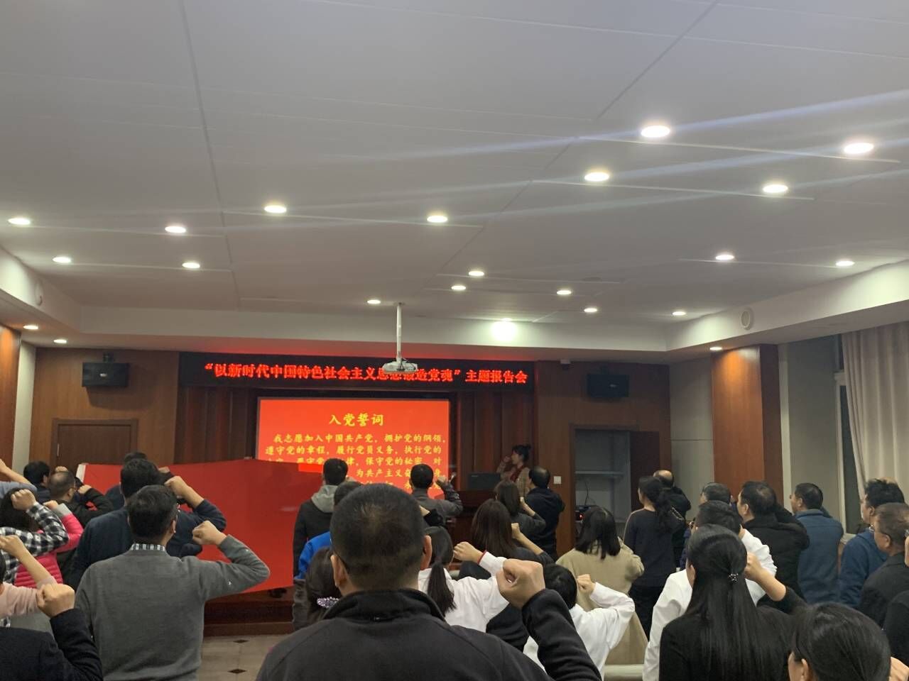 本次会议由9428cn太阳集团古天乐党委办公室主任周小萌主持。会议的第一项为重温入党誓词,由党委书记杨洲领誓,全体党员进行宣誓。会议第二项由9428cn太阳集团古天乐马克思主义公司副教授,新疆医科大学客座教授聂长久老师为全体党员做主题报告,报告的题目为“不忘初心,牢记使命——以习近平新时代中国特色社会主义思想锻造党魂”。