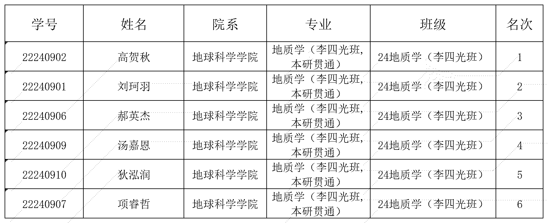 按照“公平、公开”的原则,经2024级地质学(李四光班)同学报名,各位评委老师进行面试,现对英国曼彻斯特大学 2025 年短期学术交流选拔名单排名进行公示: