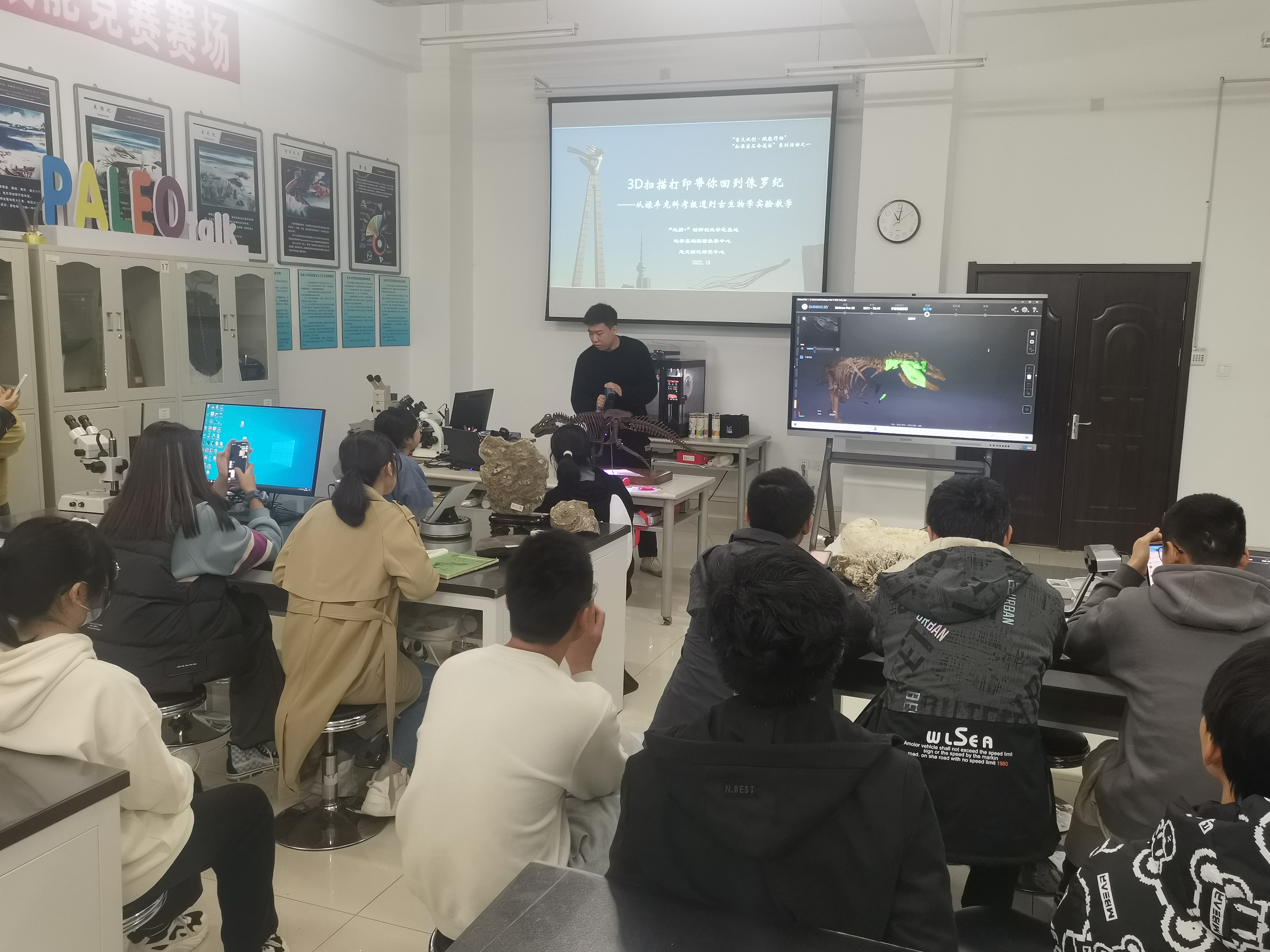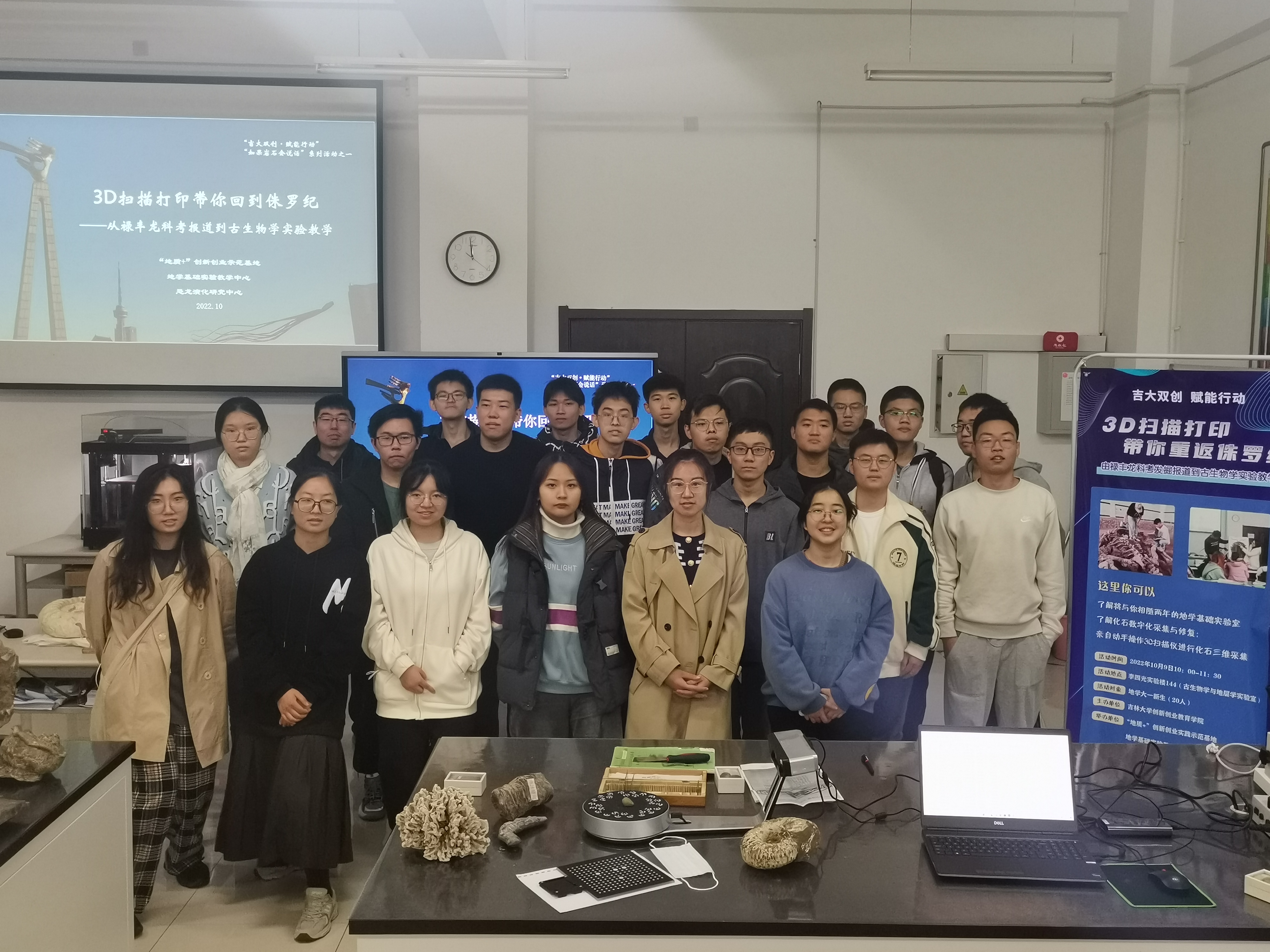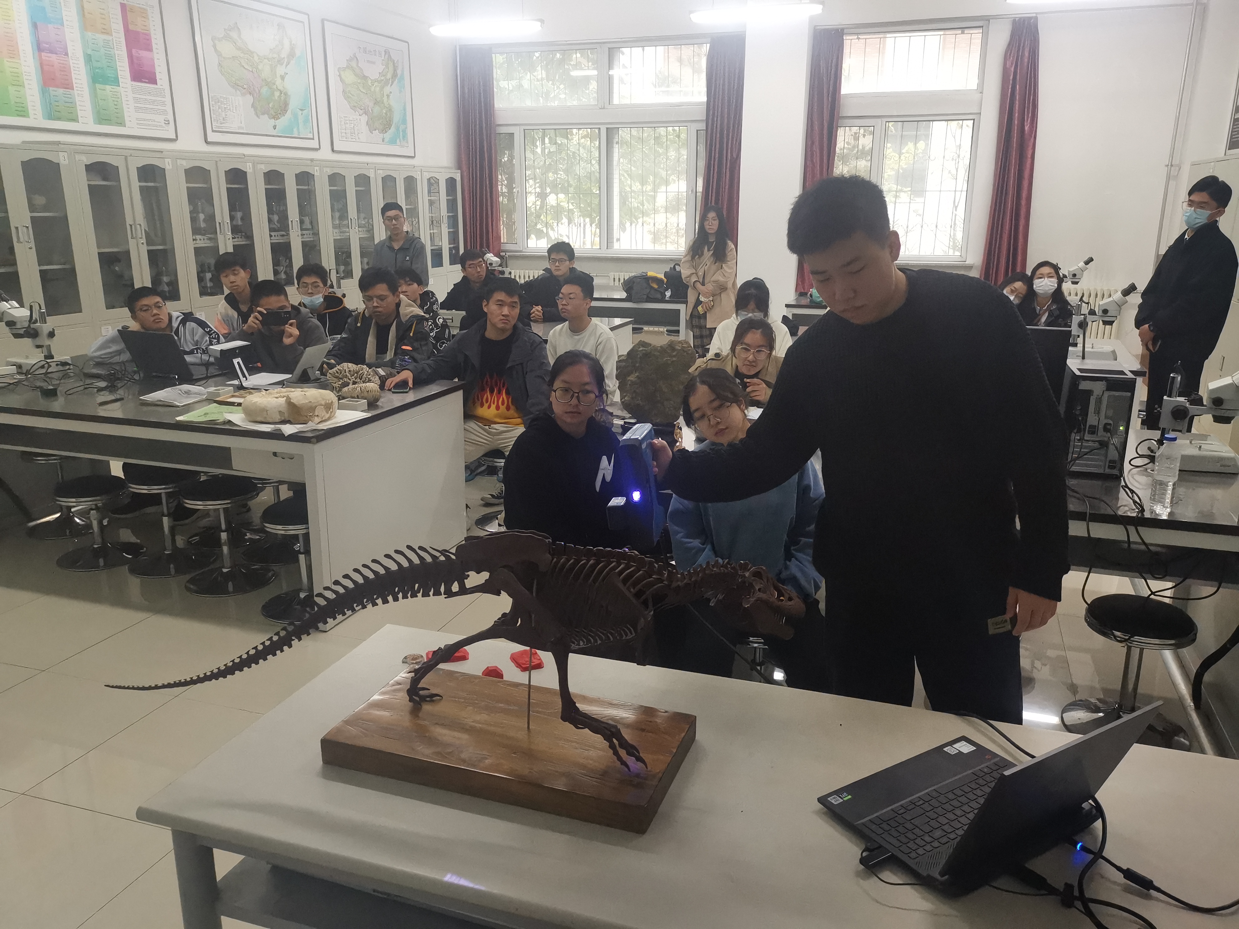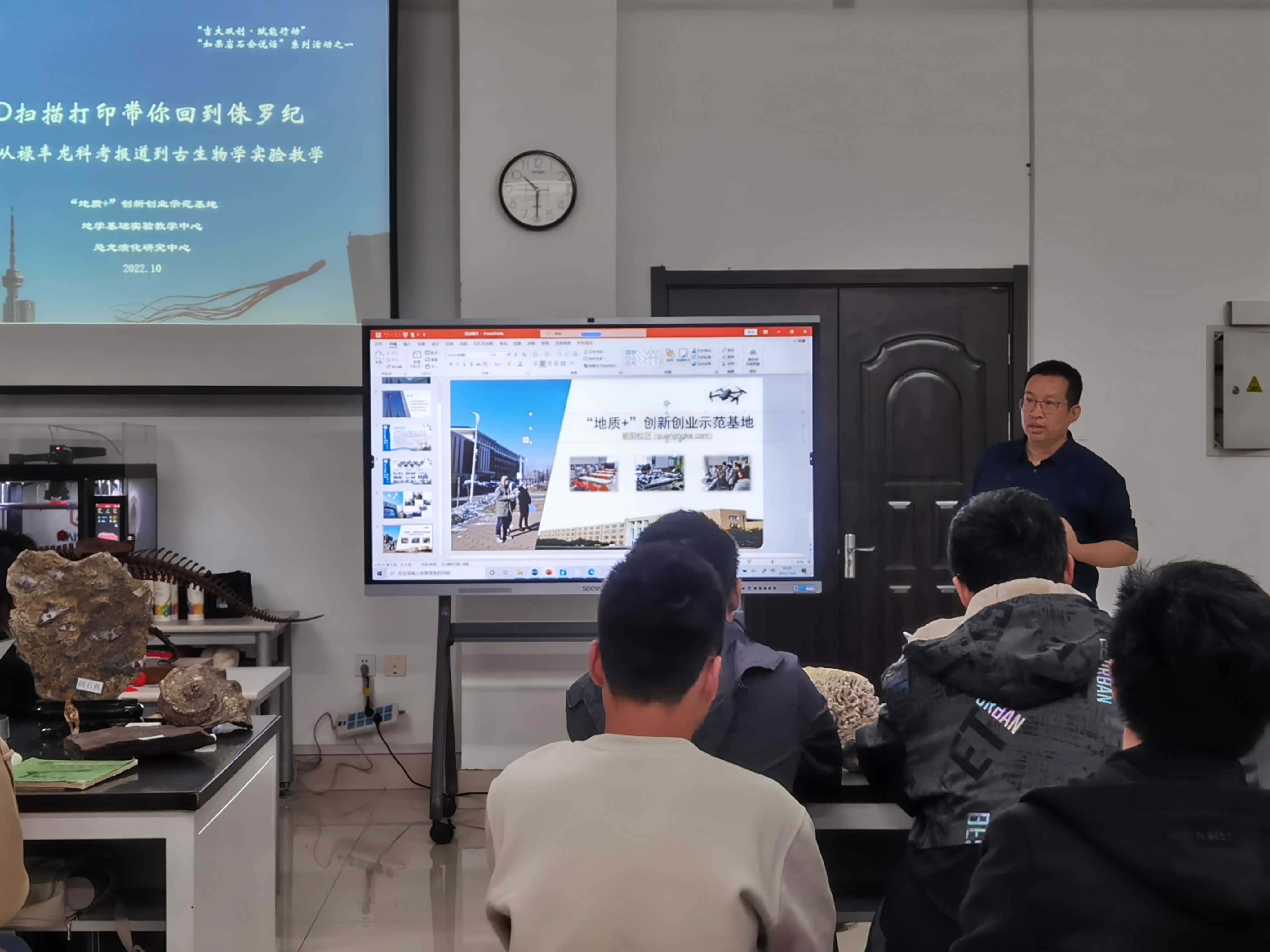 2022年10月9日,“地质+”创新创业实践示范基地在李四光实验楼144古生物与地层学实验室内,组织开展了“3D扫描打印带你重返侏罗纪”实践活动,活动由9428cn太阳集团古天乐创新创业教育公司主办,9428cn太阳集团古天乐地学基础实验教学中心、“地质+”创新创业实践示范基地、恐龙演化研究中心共同承办,地学大类一年级新生20余人参加了活动。
