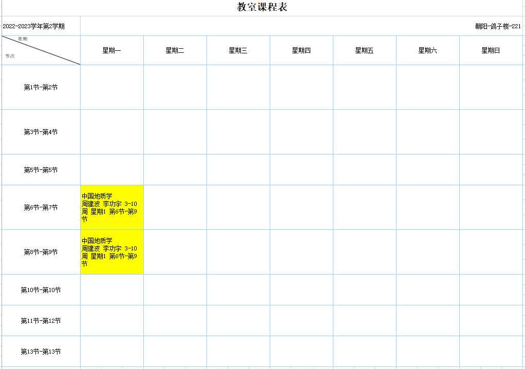 2022-2023学年第2学期课程表