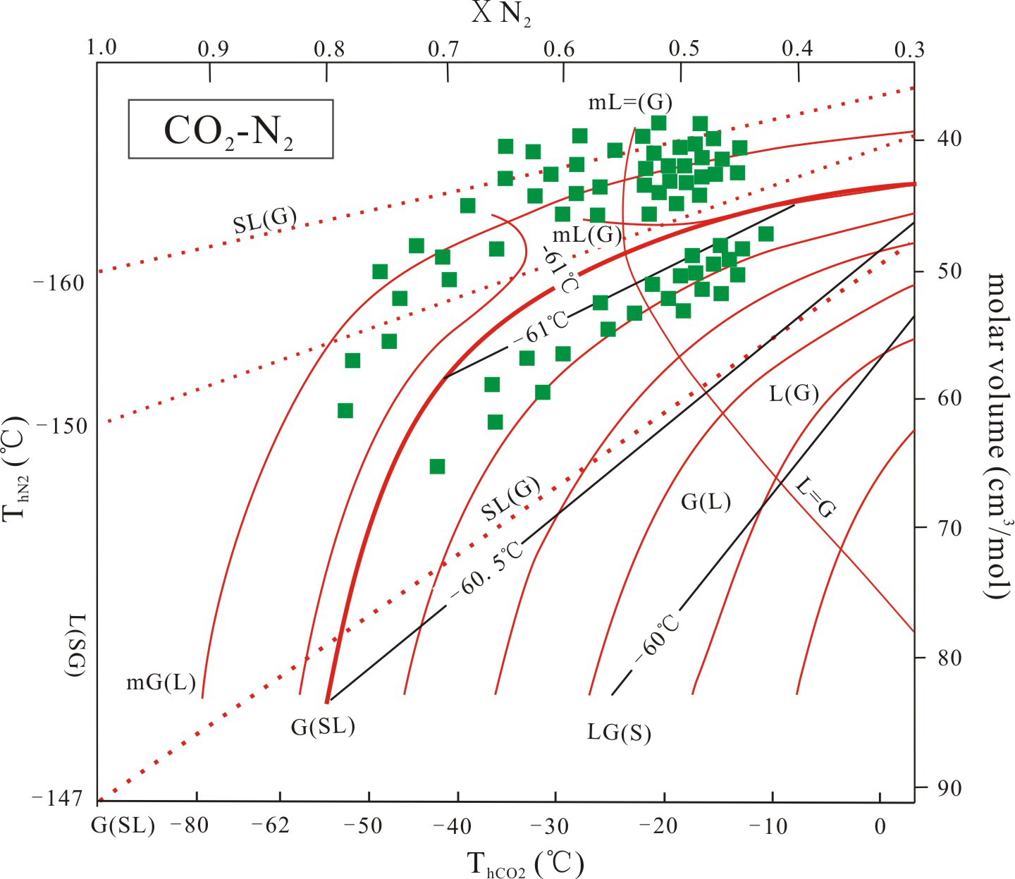 图3 流体包裹体XN2-XCO2含量图解