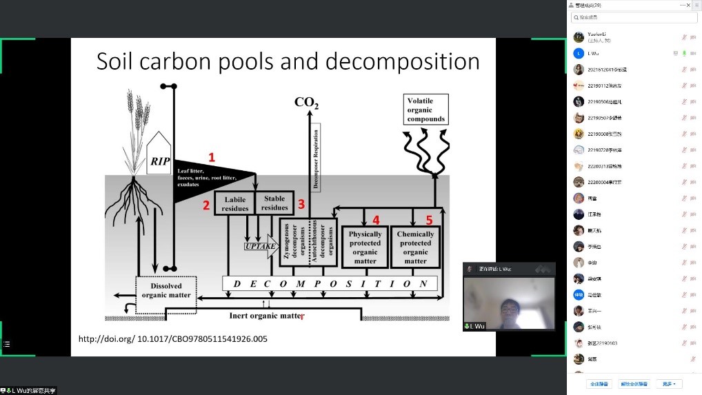 本次课程邀请到了英国洛桑研究所的吴连海研究员为主讲教师,利用2021-2022学年暑假假期,开设为期4-5周的可持续农业土地利用相关在线课程。该课程以农业土地利用为主题,计划分10次讲授,每次2个学时。课程总共分为3大模块,第1模块为讲师授课,内容包括世界农业土地利用简介、农业系统中的碳氮磷循环、土地利用对环境的影响、农业系统的多功能和模拟农业系统;第2模块为学术研讨,选取三个国际前沿研究案例,探讨气候、地类转换等对土地利用的影响以及农业土地生态系统服务的评估;第3模块为土地资源管理学科论坛,以课程相关内容为线索,组织师生进行自由讨论和心得体会分享,最后进行总结。共有35名本科生、研究生及5位教师参与本次课程。