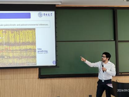 Camille Rossignol教授以东赤道盘古大陆石炭纪二叠纪的古环境为题,分享了关于古环境重建的研究,开启了精彩的学术讨论。博士Artai A. Santos华北东部石炭纪二叠纪时期植物与昆虫的相互作用作了详尽的讲解,展示了植物和昆虫在古代生态系统中的复杂关系。博士后舒文超讲述了华南乐平期大羽羊齿类植物的形态差异与习性,为与会者展现了古代植物多样性的研究进展。